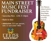 LEEDS — Leeds Main Street is organizing their inaugural Main Street Mu sic Fest Fundraiser & Silent Auction on Saturday, Nov. 12, from 3 p.m. to 10 p.m. at Rails and Ales – 1210 6th St