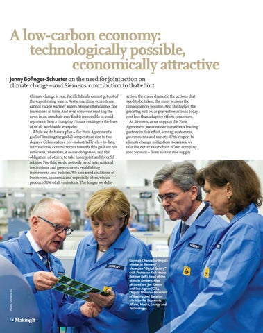 A low-carbon economy: technologically possible, economically attractive Jenny Bofinger-Schuster on the need for joint action on climate change – and Siemens’ contribution to that effort