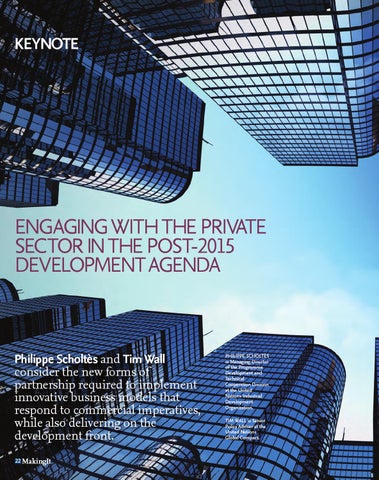 Philippe Scholtès and Tim Wall consider the new forms of partnership required to implement innovative business models that respond to commercial imperatives, while also delivering on the development front. 22 MakingIt