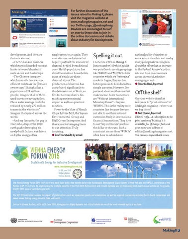 For further discussion of the issues raised in Making It, please visit the magazine website at www.makingitmagazine.net and our Twitter page, @makingitmag. Readers are encouraged to surf on over to these sites to join in the online discussion and debate about industry for development.