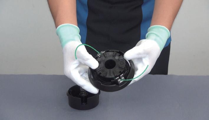 1. Disassemble trimmer head 2. Wind nylon cord on spool 3. Fix spool on trimmer head 4. Assemble trimmer head 5. Finish