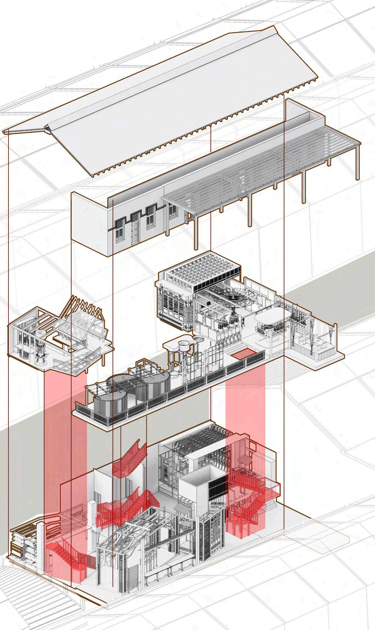 Concubine bar, known for its adaptive reuse of historical wooden structures,embodiestheRE-Mùproject’sphilosophyofpreservation and sustainability. This location was chosen for its rich history and recent transformation into a lively bar district, where the preservation of original wooden elements aligns with RE-Mù’s goals. By placing the project in a space that respects these historical structures,RE-Mùhighlightstheideaofgivingoldmaterialsnewlife.