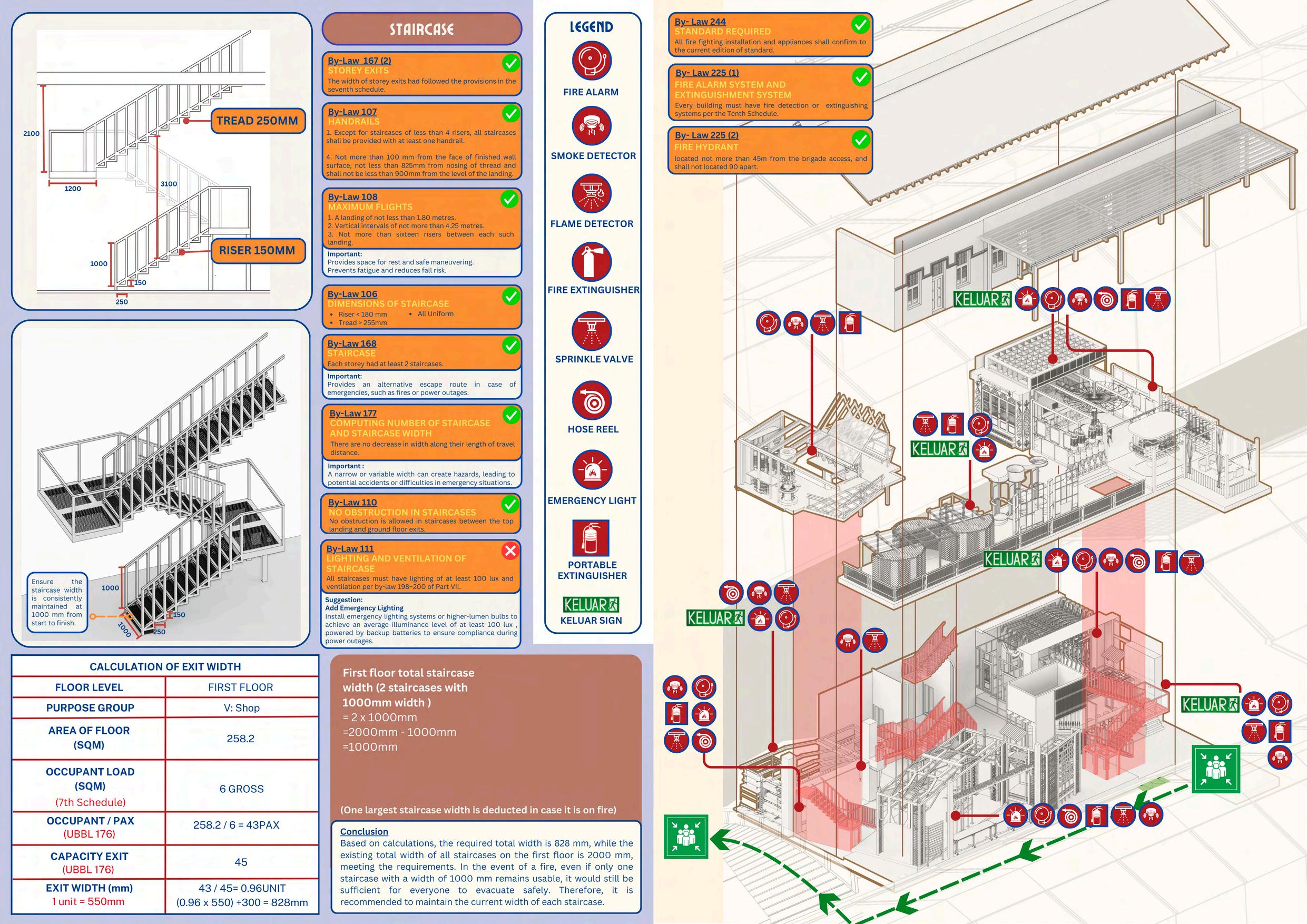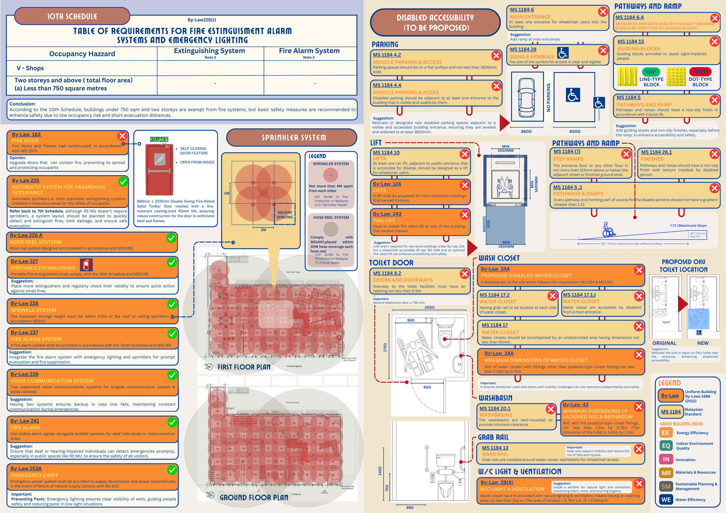 This exercise serves as a working paper for AIAD. Students’ design shall not change or be influenced by the laws due to both module’s time constrain factor, instead, it acts as an overall guideline to address the next forthcoming steps before finalizing the building plans. Thus, students are asked to identify non-compliance by marking an (x) and describing the next course of action for design rectification. This rigorous process is essentialtoensurecompliancewiththelawbeforethedrawingscanbesubmittedtothe LocalAuthority.