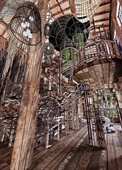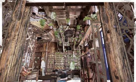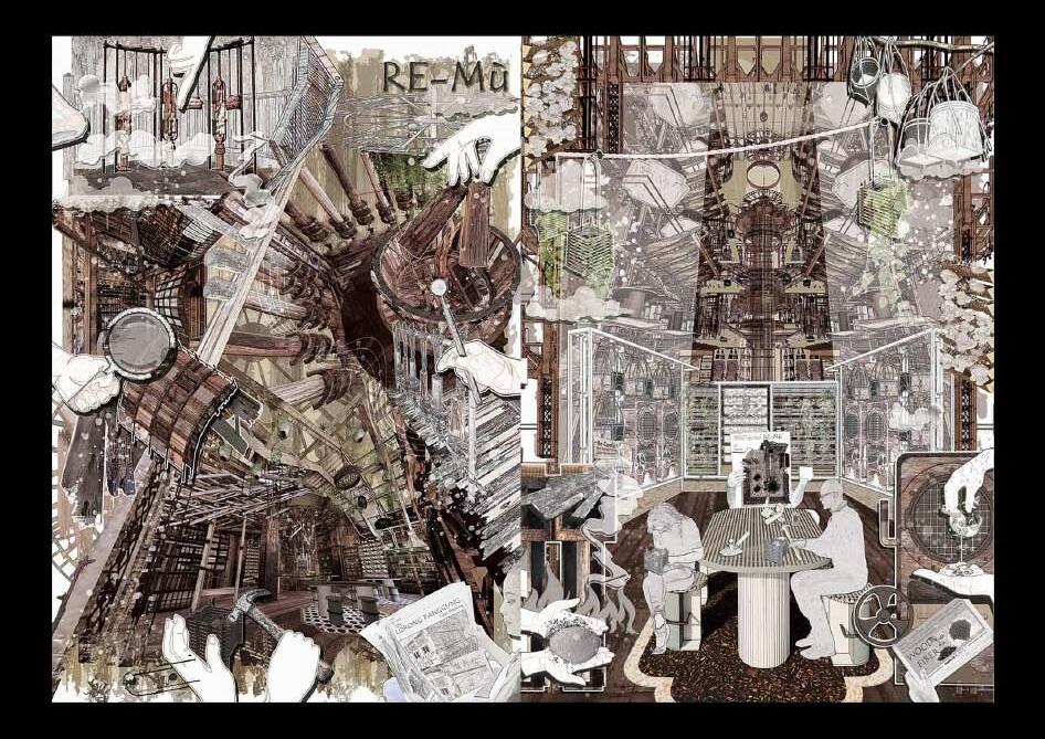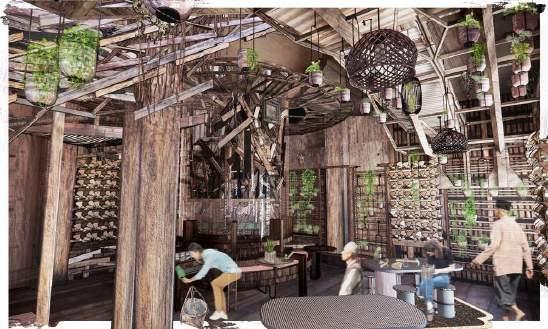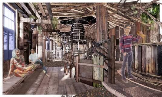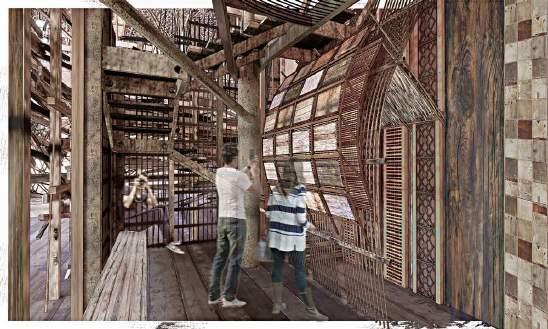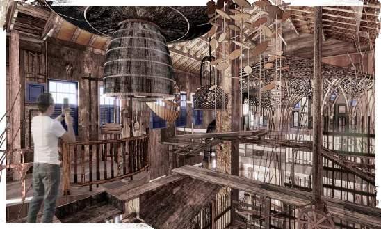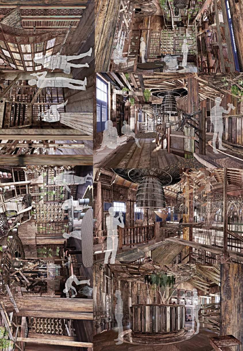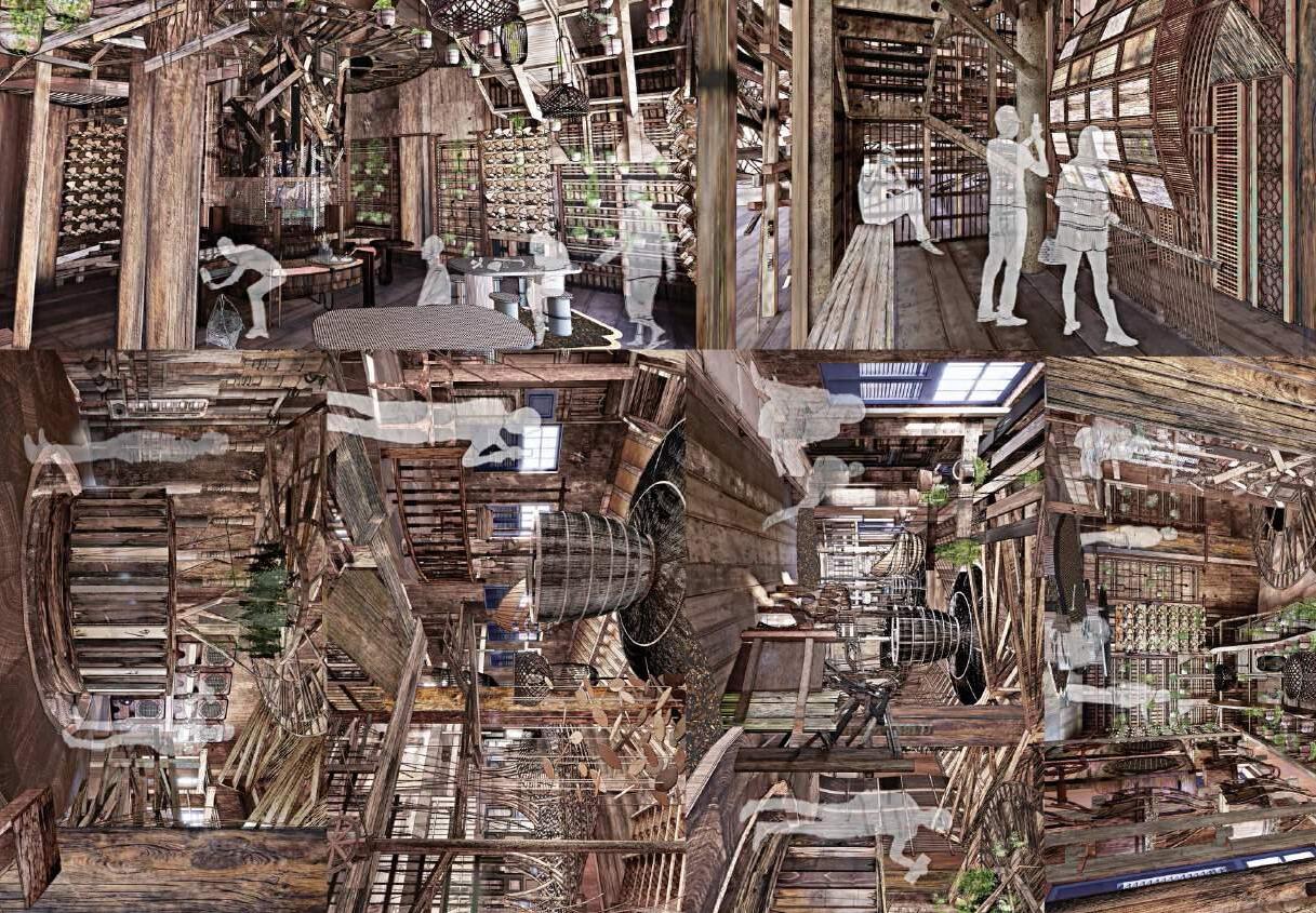 Wood Collection Pipe: This pipe extends from the first floor to the second, collecting waste wood from Petaling Street. It serves a dual purpose: it is functional, and it acts as a dynamic display, allowing visitors to witness the process of wood being collected and moved through the pipe.