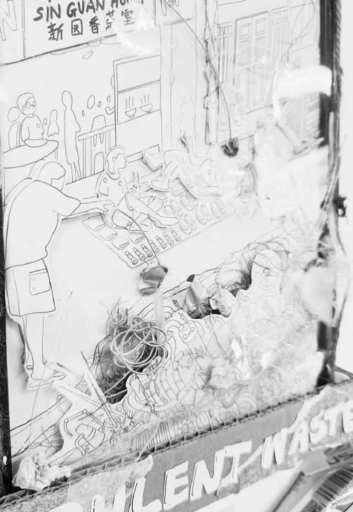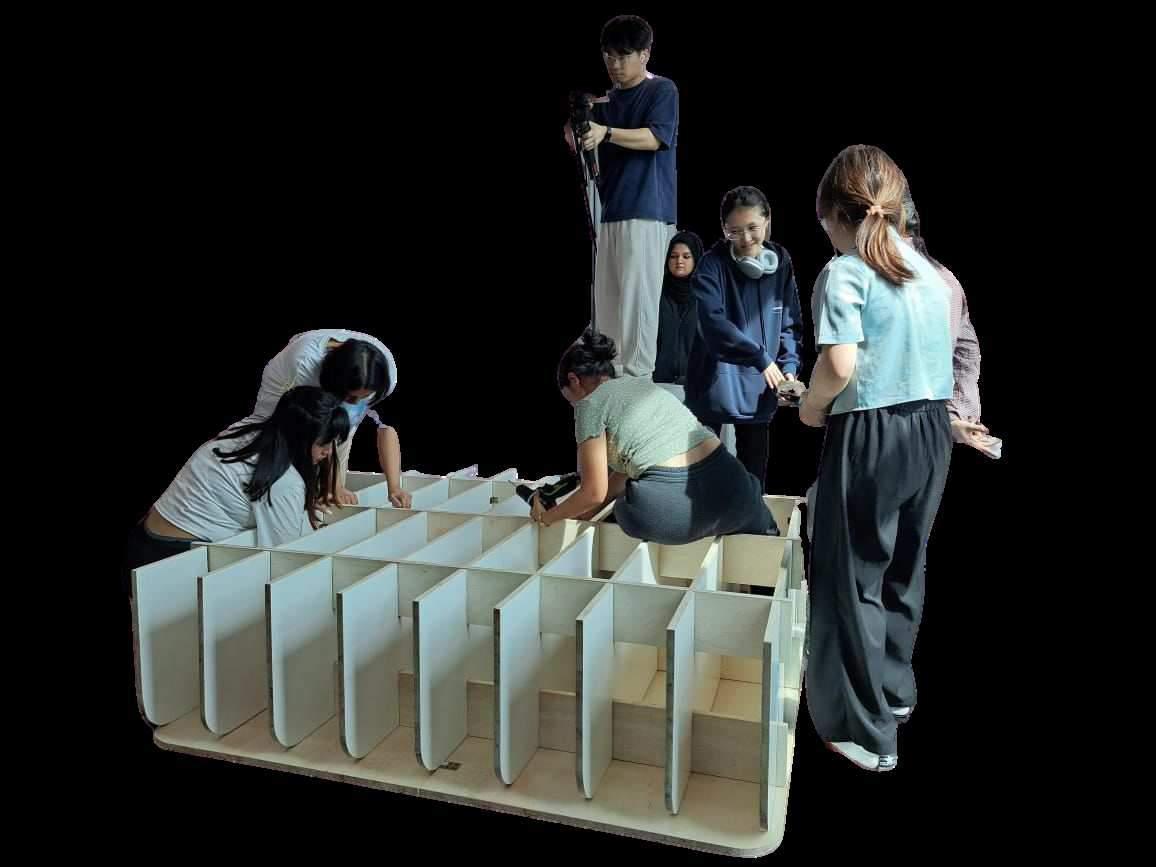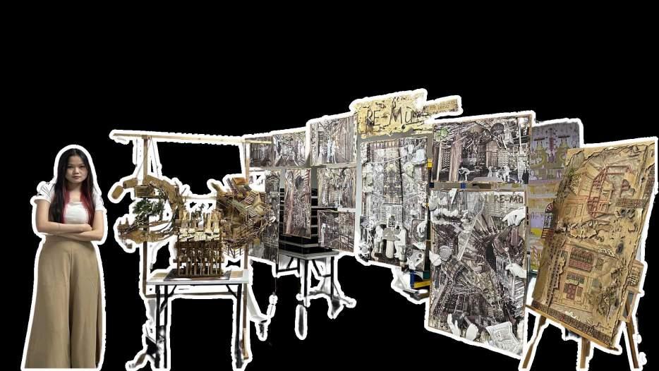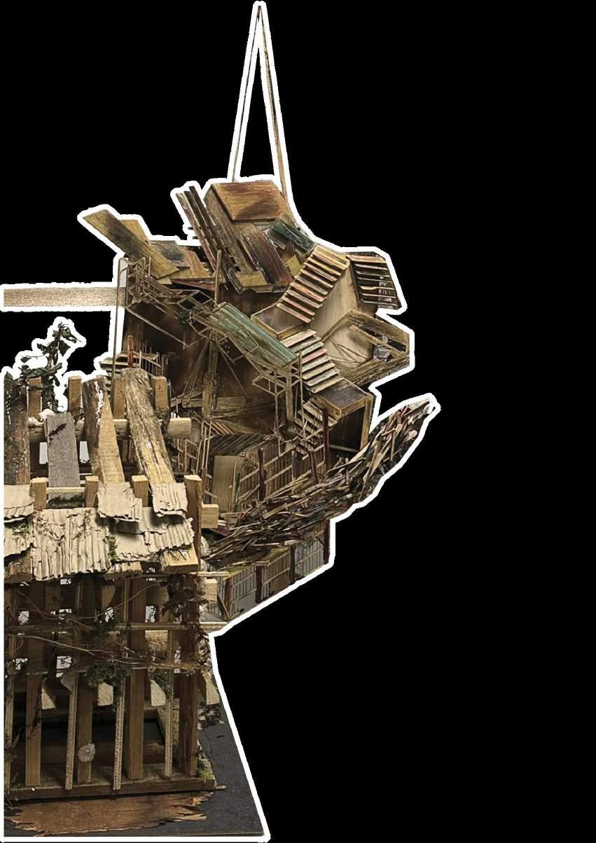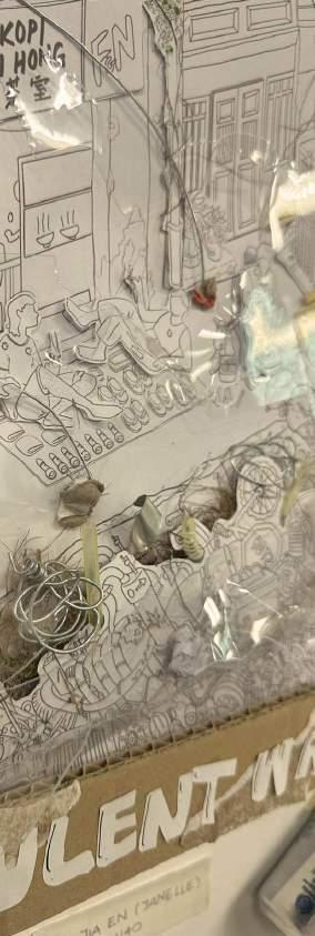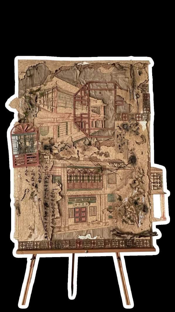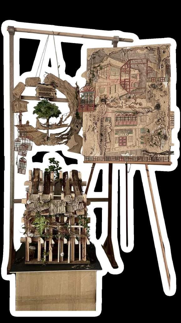 By doing so, I hope to show that these discarded pieces of wood can be transformed into something valuable and beautiful.I created a model using these "trash" wood pieces. This model costs almost nothing because the materials are all discarded wood I found in Petaling Street. The idea came from a visit to Petaling Street, where I saw many discarded wood pieces. I picked up a few rotten pieces to study. I found that each piece of rotten wood has unique textures, which inspired me to use these pieces to show their original role in Petaling Street as part of building structures.