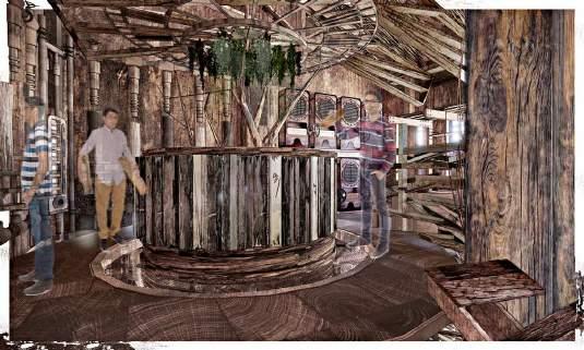 Wood Exchange Machines: In the storage area, machines allow visitors to scan their discarded wood and exchange it for souvenirs. This interactive element encourages community participation and promotes sustainable practices. 4.