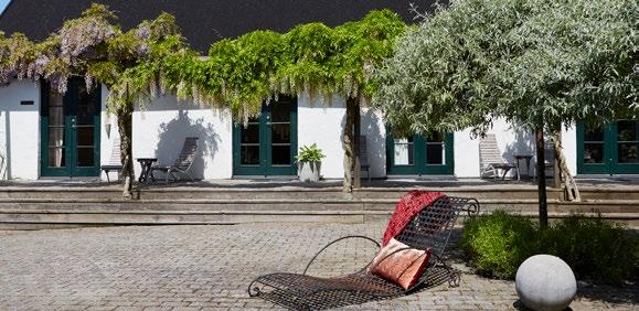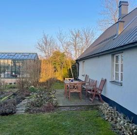 Trädgården är perfekt vänd mot sydväst och ramas in av murar, glashuset och en uppvärmd pool. En helt privat och insynsskyddad sfär. Lättskött med stenläggningar och samtidigt växer här en rad växter såsom äppelträd, rosor, lavendel, vin, hortensia och buxbom.