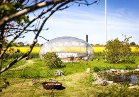 En av de mest unika aspekterna av denna gård är dess uteplats: kupolen. Byggd 2017 och ritad av den danske arkitekten Kristoffer Tejlgaard. Denna kupol är en magisk plats att tillbringa kvällarna på. Oavsett årstid kan man här njuta av stjärnhimlen, varmt och bekvämt skyddad, eller ta del av den otroliga solnedgången på Österlens fina sommarkvällar. Att somna under stjärnorna i denna fantastiska miljö är en upplevelse utöver det vanliga. Välkommen till ett liv i samband med naturen, där varje detalj är en påminnelse om gårdens unika charm och skönhet.