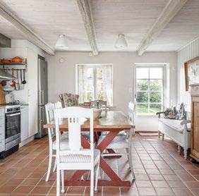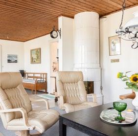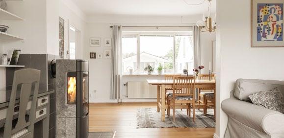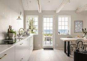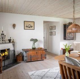 Bostaden välkomnar med ljusa, öppna ytor där fönsterpartier bjuder in havets glittrande ljus. Köket, placerat i husets östra gavel, ligger i direkt anslutning till ett luftigt vardagsrum. På golven vilar vackra plankgolv i ask, och i husets mitt sprider en stämningsfull braskamin värme under kyliga höstdagar. Vid sidan av murstocken leder en elegant smidestrappa upp till det rymliga loftet – idag använt som sovrum – med full takhöjd och en hänförande utsikt över havet i söder.