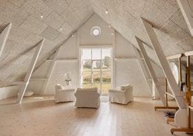 Huvudbyggnaden binds samman med en tillbyggnad som rymmer ett stort sovrum, där unika takfönster kan öppnas mot himlen. Intill ligger ett stilfullt badrum, klätt i exklusivt ljust klinker i storformat (2700 x 1200 mm), med både tvättmaskin och torktumlare. Genomgående golvvärme ger en behaglig komfort i hela huset.