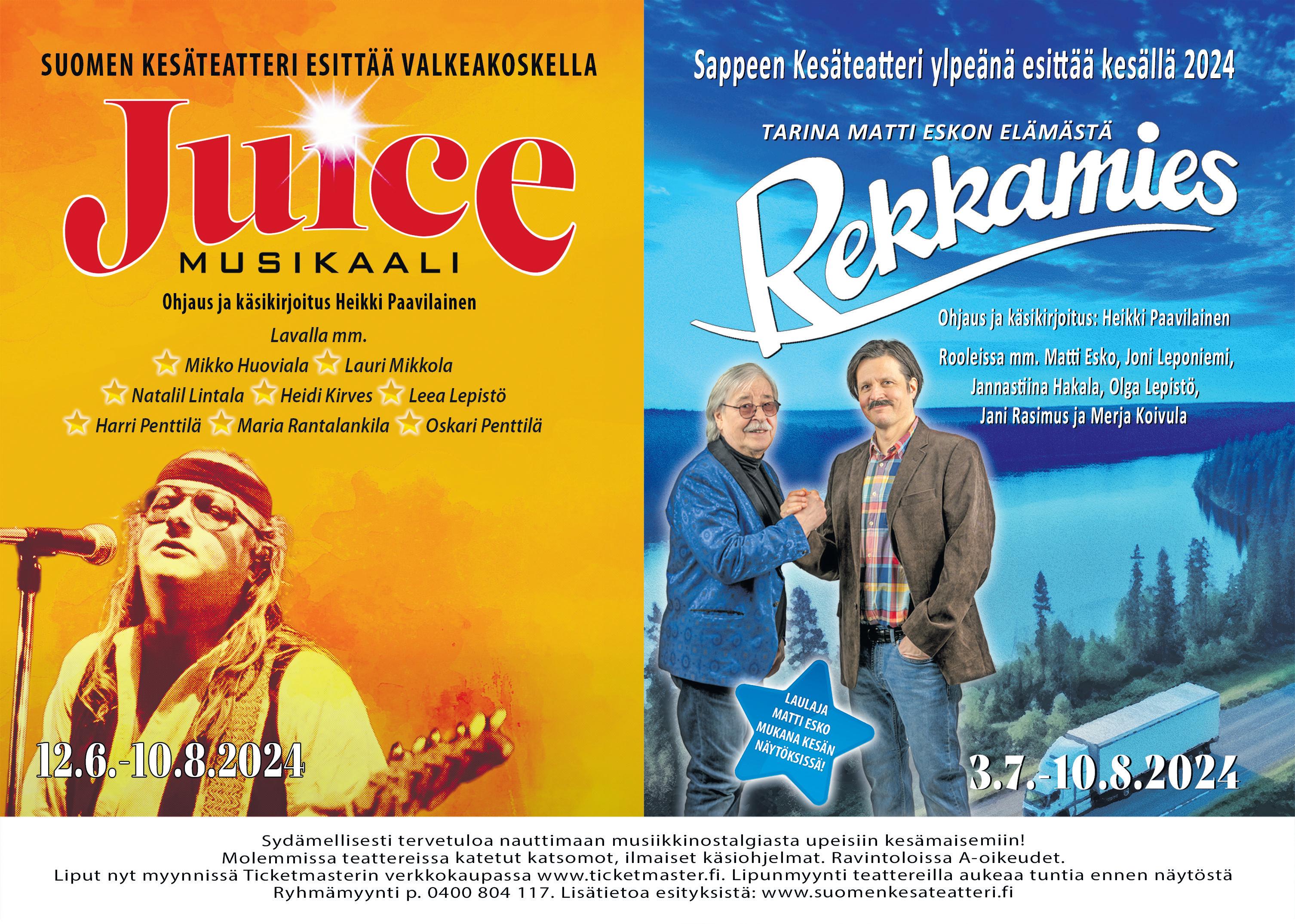 Elämältä kaiken sain -musiikkikomedian esitykset 25.6.-17.8.2024. Tervetuloa nauttimaan upeasta kesäteatterielämyksestä!