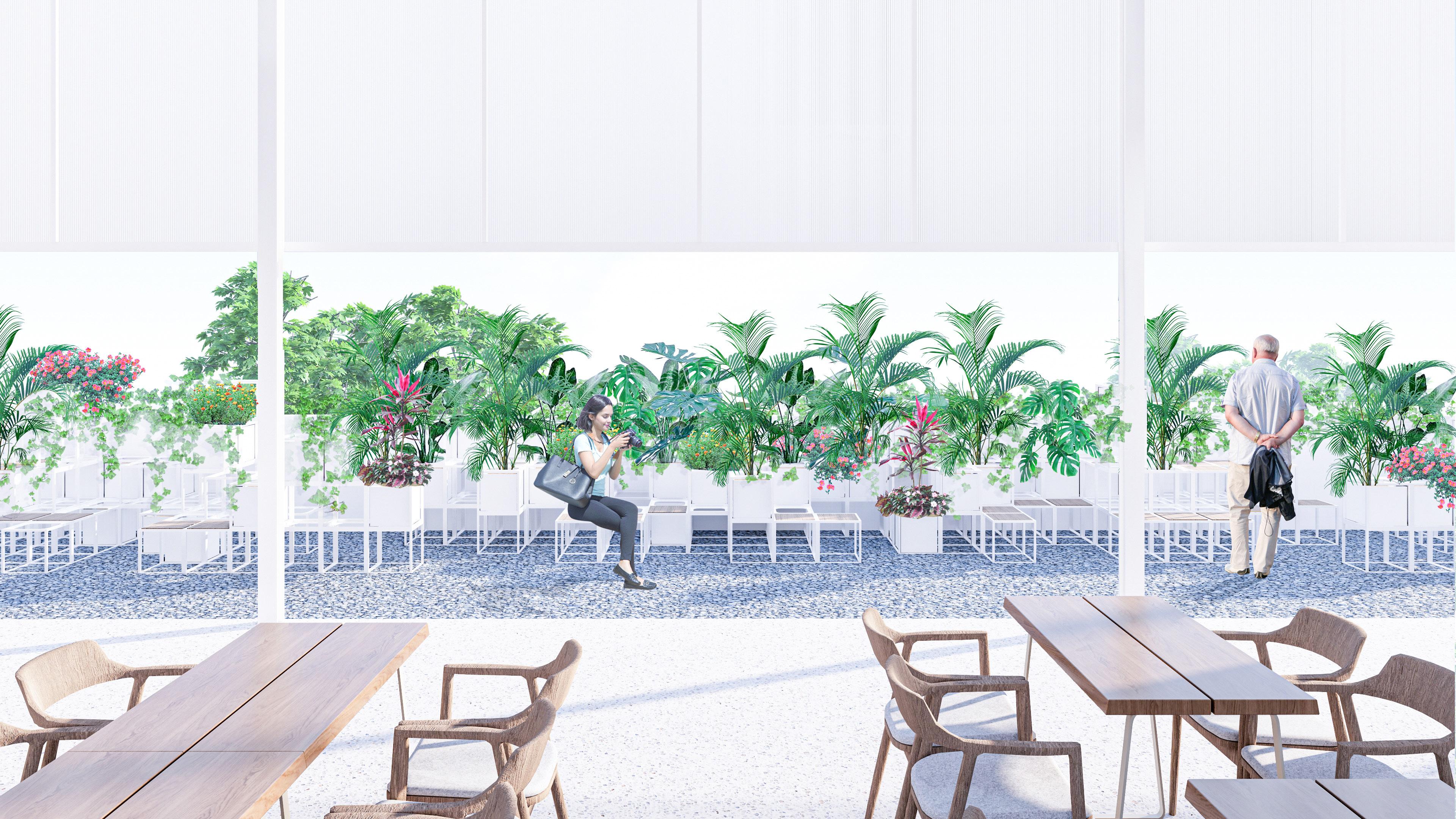 Amidst the fully furnished space, the space seeks to provide privacy while making sure to leave sufficient room for overall space to adapt accordingly to the desired atmosphere. In addition to that, modules ranging from furniture and planter boxes are intended to allow the space to be rearrangeable and flexible.