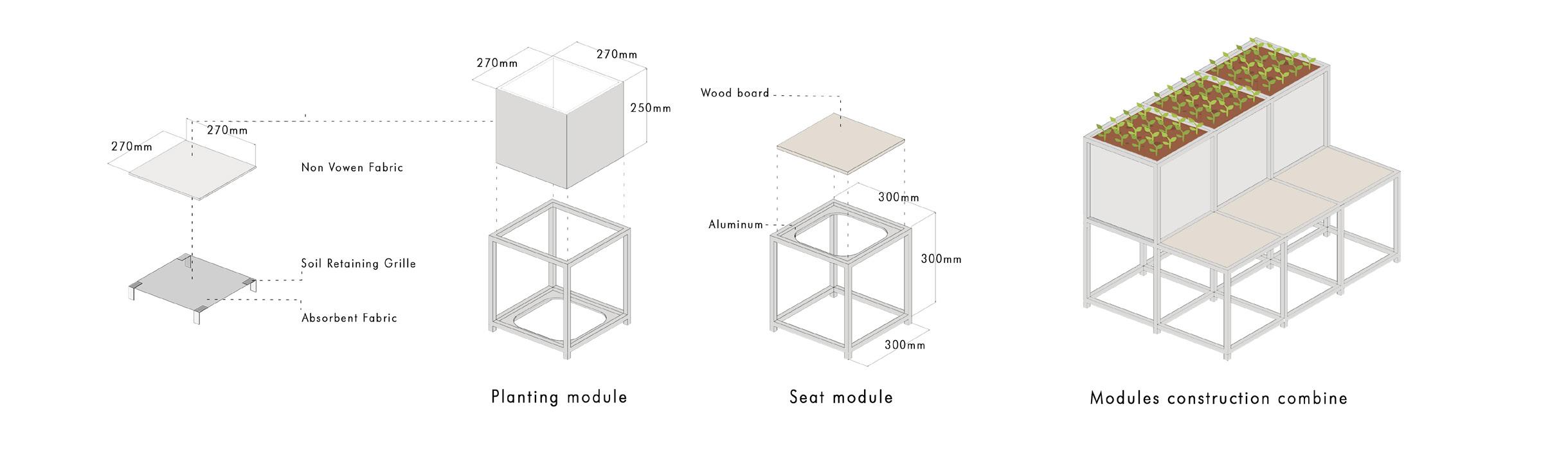 The steel-structured planter box requires very little effort to be built due to the modularity designed and its large availability of materials in the local context as well as the available local craftsmanship which not only is cost-effective, but also contributes in helping the local community as well. On the other hand, as the planter box also comes with ones that are not fixed, allowing the objects to be flexible and very adaptable as users can easily arrange the space interestingly as time passes by as for future changes and arragnment.