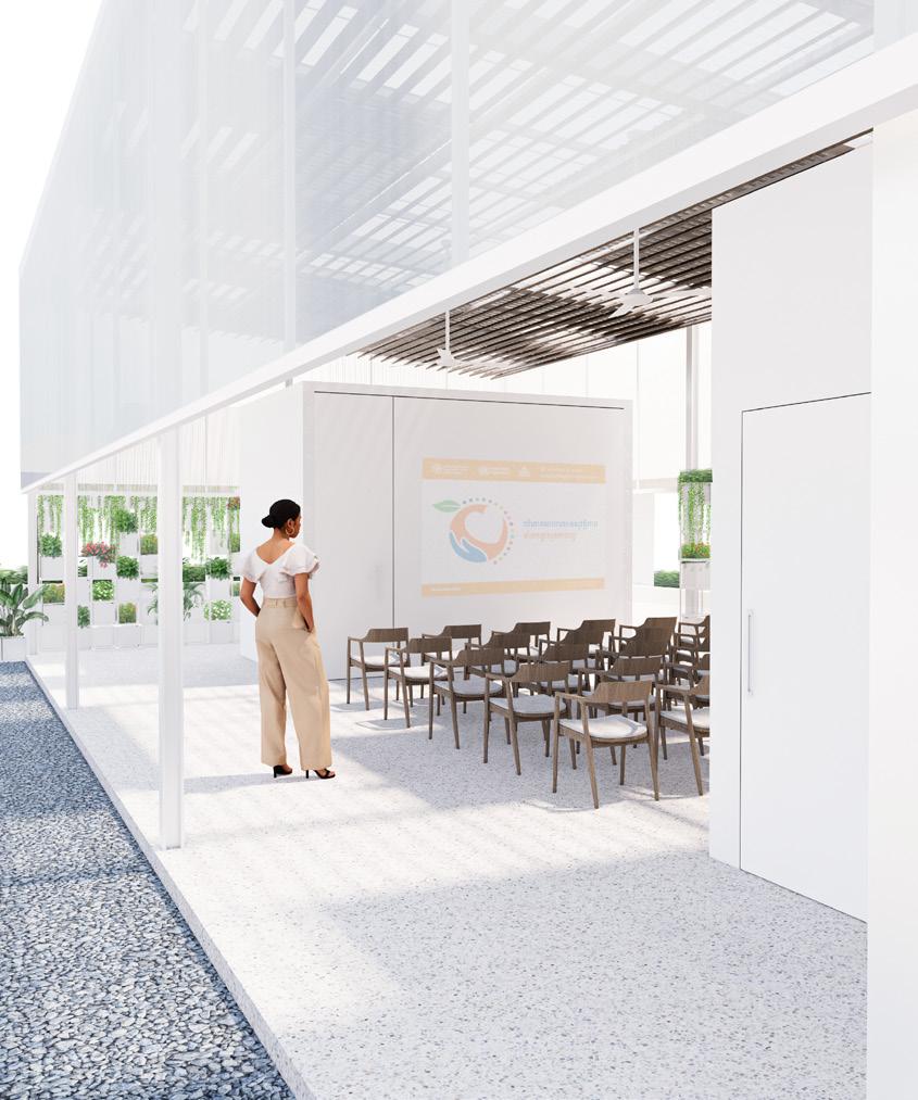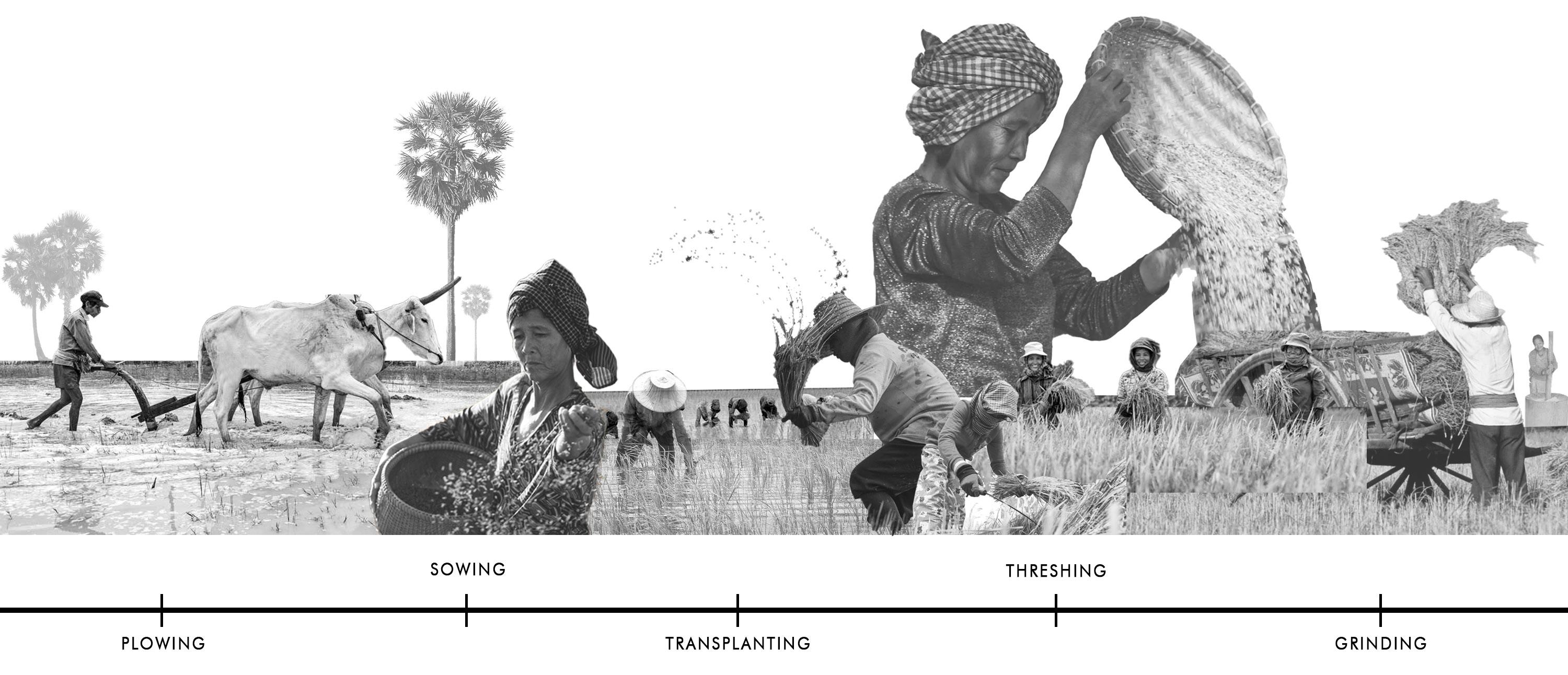 With rice being an agricultural crop that Cambodia is known for, the design seeks to create space that brings users to experience different stages of rice cultivation work remotely. With that in mind, the main process of the work has abstractly inspired the spatial organization and ordering system of the design