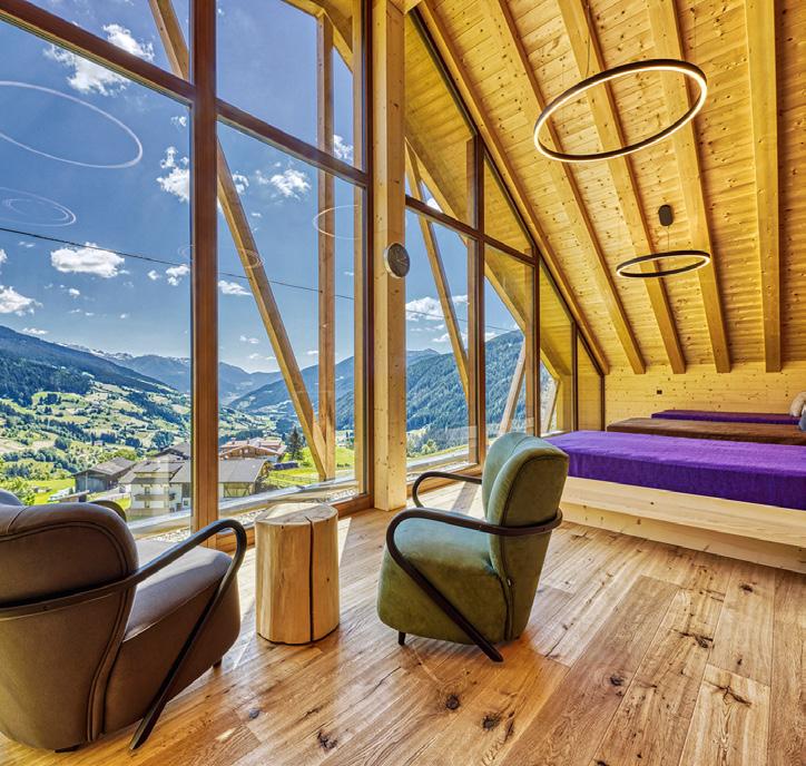tal ist die Gassenloge mit ihren hohen Glasfronten und dem freien Blick über das ganze Tal. Im dazugehörigen Logen-Spa können Gäste im 20 Meter langen InfinityAussenpool ihre Bahnen ziehen, in der Yoga Stube Körper und Geist in Einklang bringen, bei Massagen und Anwendungen Entspannung finden oder in Dampfbad und Sauna den Tag ausklingen lassen. Sportlicher Genuss kommt im Gassenhof auch nicht zu kurz. Neben Radfahren, Klettern und täglichen geführten Wanderungen im Sommer, bietet das Ridnauntal auch im Winter eine Vielzahl an sanften Sportmöglichkeiten, wie Schneeschuh- und Winterwandern, kostenloser Nutzung der Langlaufloipe mit Einstieg direkt am Hotel und Pisten durch das ganze Tal, oder Skifahren und Snowboarden in kleinen, familiären Skigebieten. www.gassenhof.com