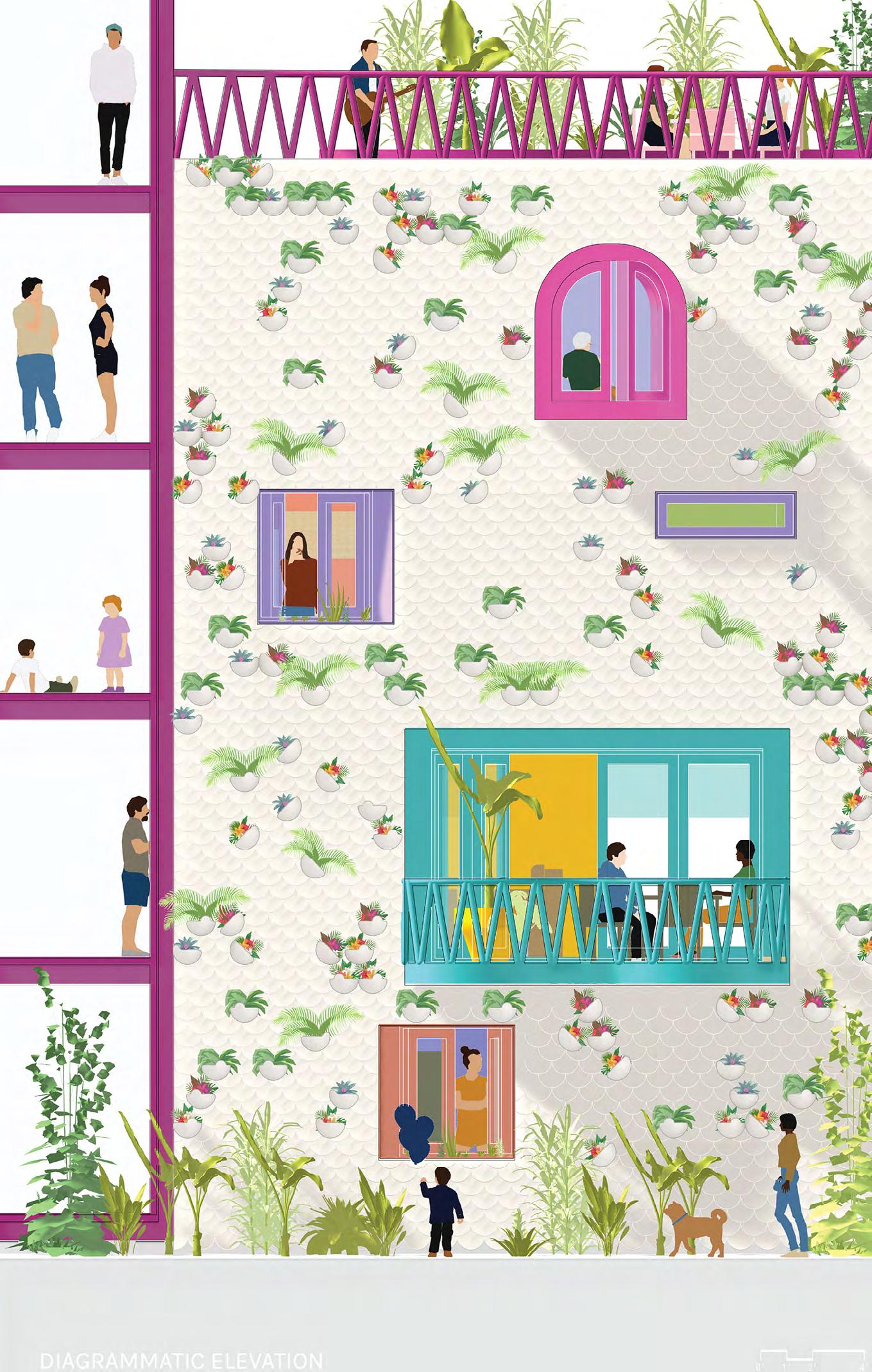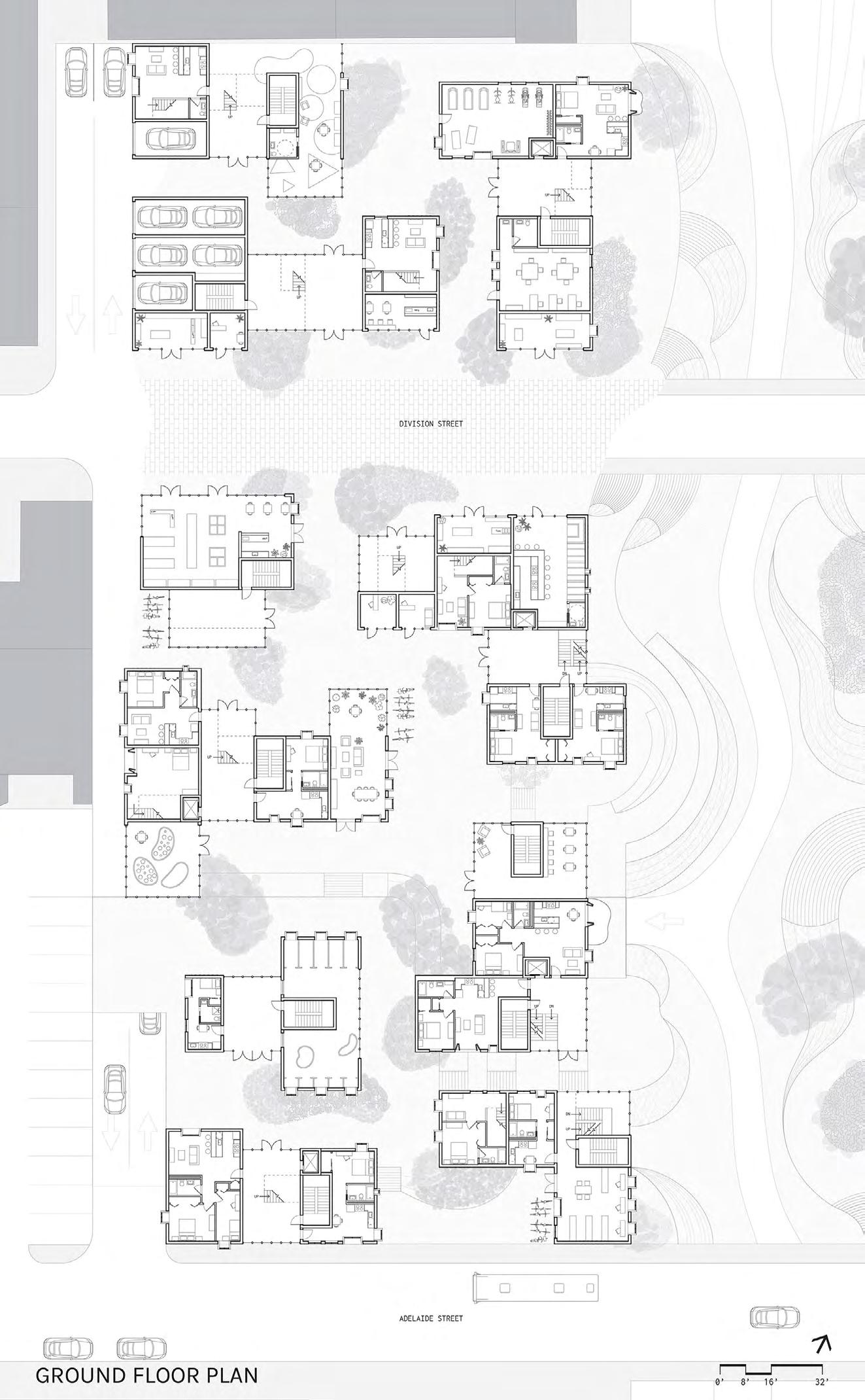 ‘Party Animals!’ explores the intersection between co-housing, permaculture, and a diversity of community players’ needs. Located on a site directly adjacent to the Dequindre Cut: a park in Detroit, MI.