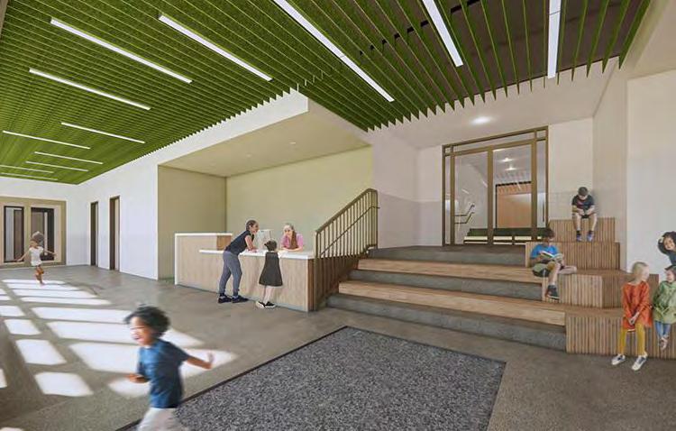 Choosing to renew the buildings purpose as swing school, DCPS engaged Studio MB to update the school’s lobby/welcome center and design the addition of a permanent multi-use Gymnasium/ Cafeteria.