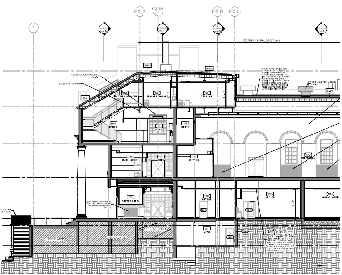 The modernization and addition to an existing, historic, 4-8-grade DC Public School presented unconventional challenges including a total site-grade difference of 27’ between the new entry and rear of the site in addition to a cavernous basement which at one time served as a cold war bomb shelter.