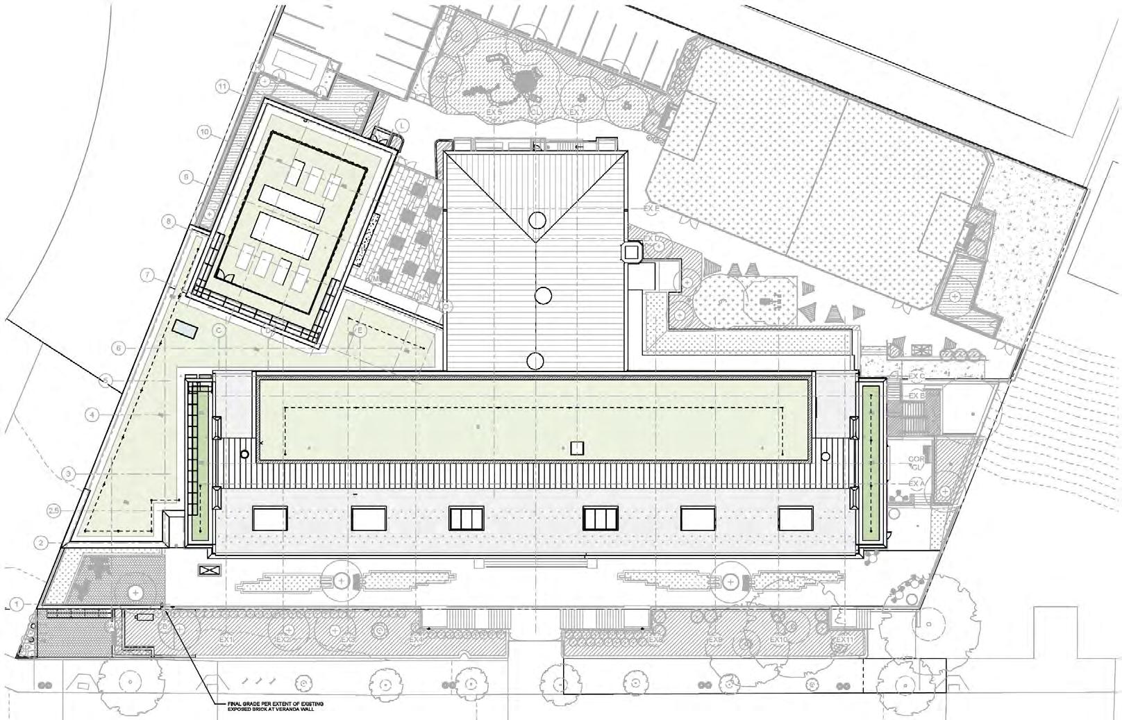 The logistical challenges on this project included working with an arborist to preserve 3 heritage trees in close proximity to the addition, the relocation of a school playground, phasing stages of construction including the demolition of temporary cafeteria structure, and coordinating necessary electrical upgrades without disturbing normal school operations.