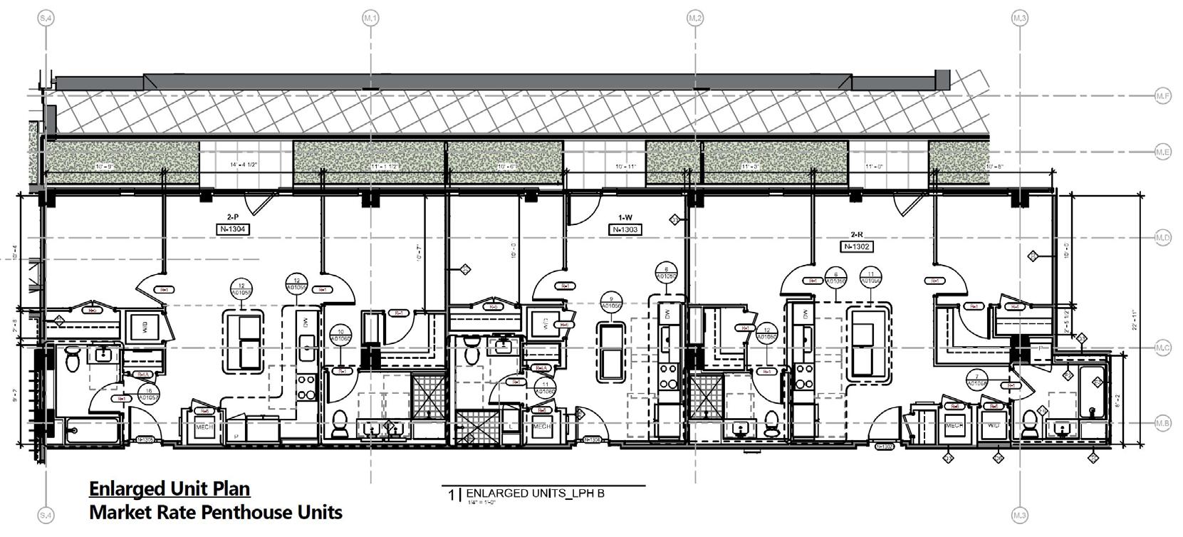 My contributions included MEP coordination, Market Rate Interiors coordination, unit design (Type A, Type B, Accessible), structural coordination, exterior penthouse amenity design, details, and construction documents.