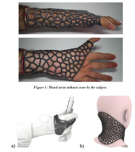 Orthoses and prostheses are devices that assist a disability or skeletal dysfunctions while locally improving the structural and functional characteristics of the musculoskeletal system. e most common uses for orthoses are body protection, movement assistance and prevention or correction of deformations thus making them useful objects for anyone suffering from osteoarthritis, fractures, tendon inflammation and neurological disorders just to mention a few. Additive manufacturing (AM) allows to create customized objects and products on demand for the individual user. Functionally Graded Additive Manufacturing (FGAM) is a function centered fabrication process that focuses on the performance modelling. Functionally Graded Materials (FGMs) are used to strategically control the density or the material composition inside the domain of a monolithic object.