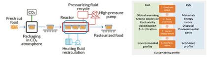 e increasing demand for a healthy diet calls for an evolution of the food processing chain, with special attention to fresh and organic products. In the last decades low temperature and food preservation techniques were developed to increase safety without affecting sensorial properties. anks to the European project HO-FOOD (Innovative High-pressure process to increase the preservation of ready-to-eat Organic FOOD) financed within the Susfood 2 Core Organic Consortium, intend to foster the whole fresh vegetable food chain via the development of a new food pasteurization technique, based on the use of high pressure CO. Prof. Sara Spilimbergo is the coordinator of the project and her research team “Superunit” is designing, fabricating, optimizing and testing small and medium scale plants (fig.1) which will be used to increase the preservation overtime of 3 organic food products: melon, pumpkin and almonds. Microbial, chemical and physical characterization, including sensorial and bio-accessibility analysis, will be performed by the other partners. To demonstrate the sustainability of the new process, Life Cycle Assessment (LCA) and Life Cycle Costing (LCC) are applied by SAM.lab group, coordinated by Prof. Anna Mazzi, to quantify environmental and economic performances of technology considering different end users, with “cradle-to-grave” approach (fig.2).
