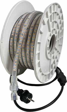 Flex-Line LE D-strip m ed 1 500 lu men/m – lämplig för både in omhus- och utomhusbruk. Kan forl ä nges op ti l l 50m.