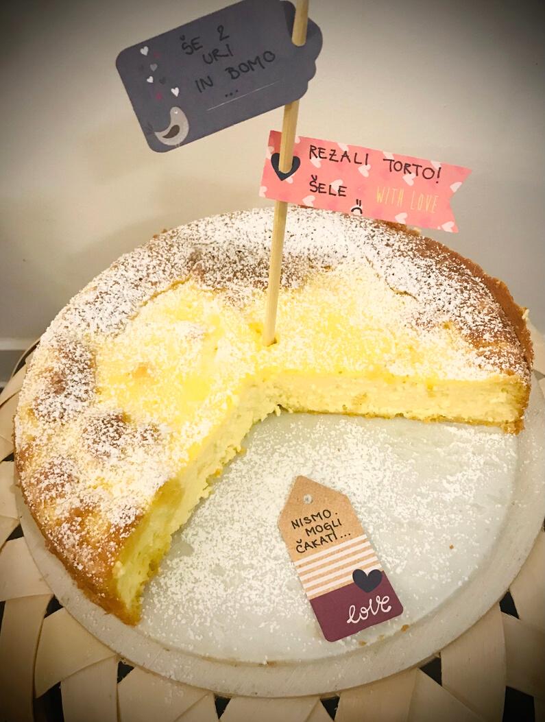 Torto pecite 45-50 minut. Torta mora narasti in se na sobni temperaturi ohlajati vsaj 2 uri, preden jo vzamete iz modela in razrežete.
