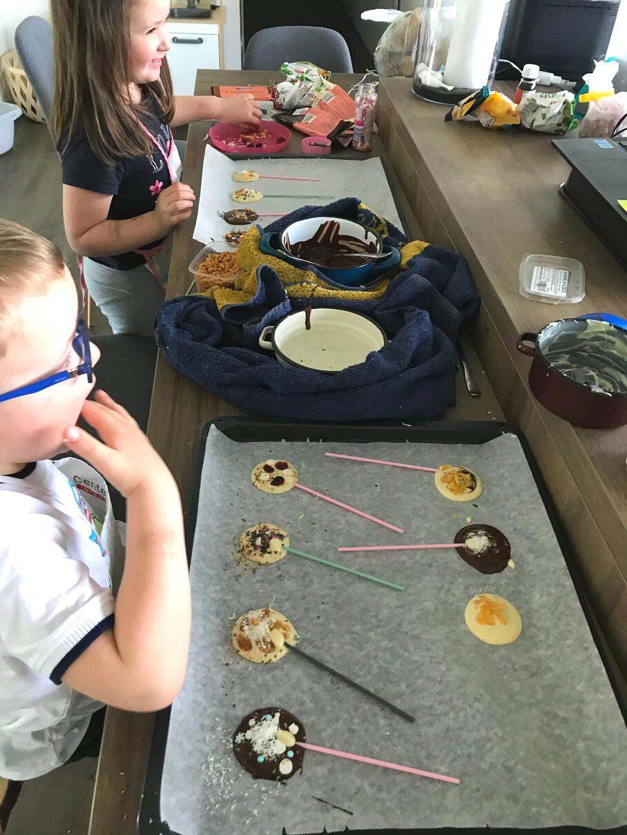 paro. Počakajte, da se čokolada stopi in vmes večkrat pomešajte. Žlico pomočite v čokolado in rahlo pokapajte prek poljubčkov.