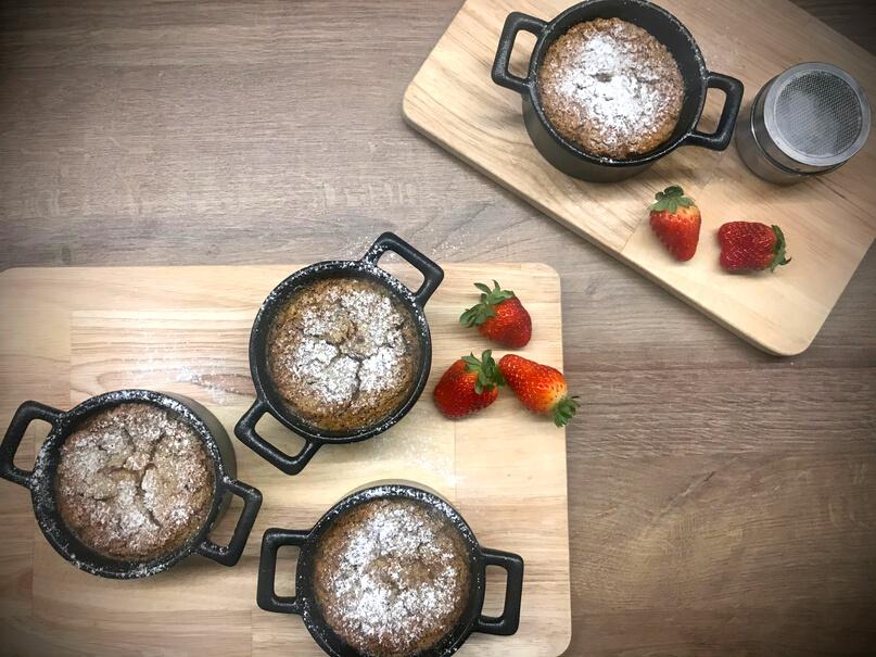 Na drobne koščke narežite suhe marelice in jih na koncu čisto rahlo vmešajte v zmes. Prelijte v pekač in pecite približno 25-30 minut. Sredina testa morda še ne bo popolnoma čvrsta, vendar se bo strdila med ohlajanjem.