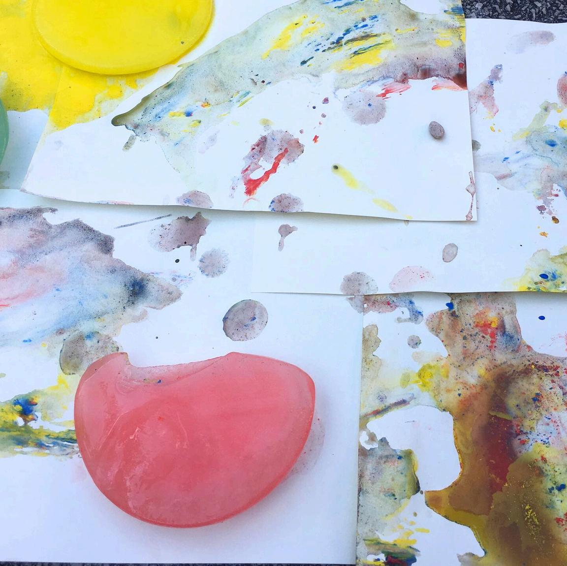 Na papir iztisni barvo in čez njo zakotali različne žoge.