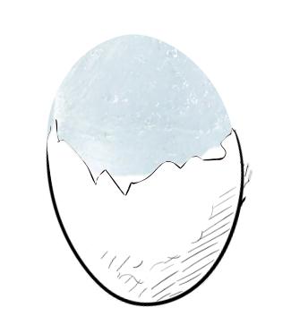 V kozarec natoči toplo vodo in dodaj 2-3 žlice sode bikarbone; dobro premešaj. Jajčno lupino napolni z nabranim naravnim materialom, nato pa vanjo nalij vodo s sodo bikarbono. Tako pripravljeno jajčno lupino postavi v zmrzovalnik. Pri tem naj ti pomagajo starši, saj se lupina v zamrzovalniku ne sme prevrniti. Najlažje bo, če iz hladilnika prestaviš podstavek za jajca.