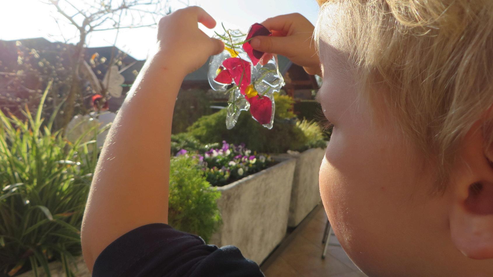 S starši se odpravi na sprehod in naberi pisano travniško cvetje ter druge naravne zaklade, ki jih najdeš na poti – iglice, kamenje, manjše storže … Doma pripravi jajca. Previdno potolči po jajčni lupini, tako da se razbije samo zgornji del. Jajce shrani za pripravo okusnega obroka, lupino pa previdno speri.