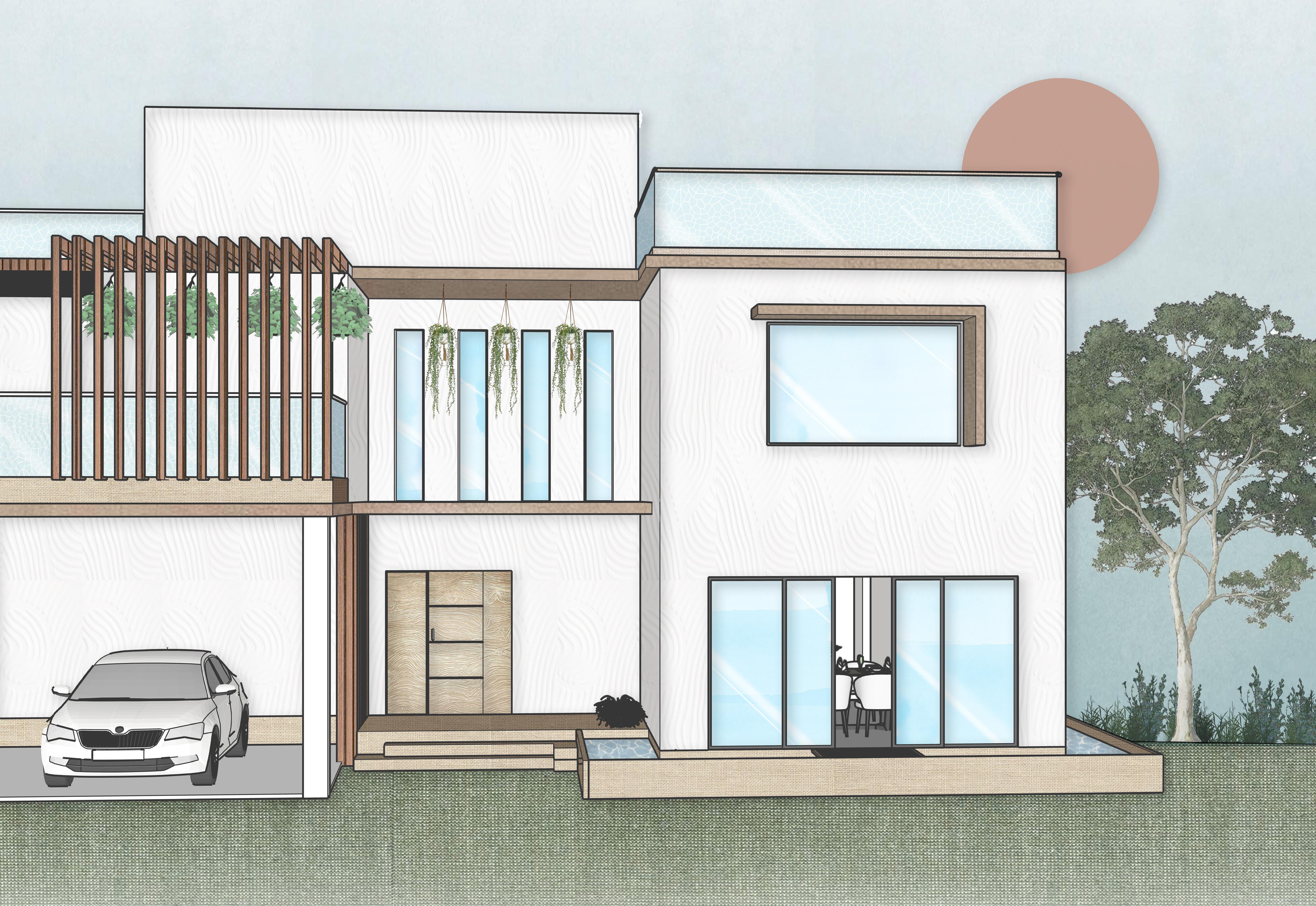 Located in Manipal, this residence was made for a family of 6 consisting of a couple their parents and children. The goal was to create a space which is modern and has elements of nature embedded in the house while keeping it minimal. Ample amount of area is pro vided in each space along with water bodies and indoor gardens encorporated in the de sign. For a good amount of ventillation, skylight and staircase windows were added.