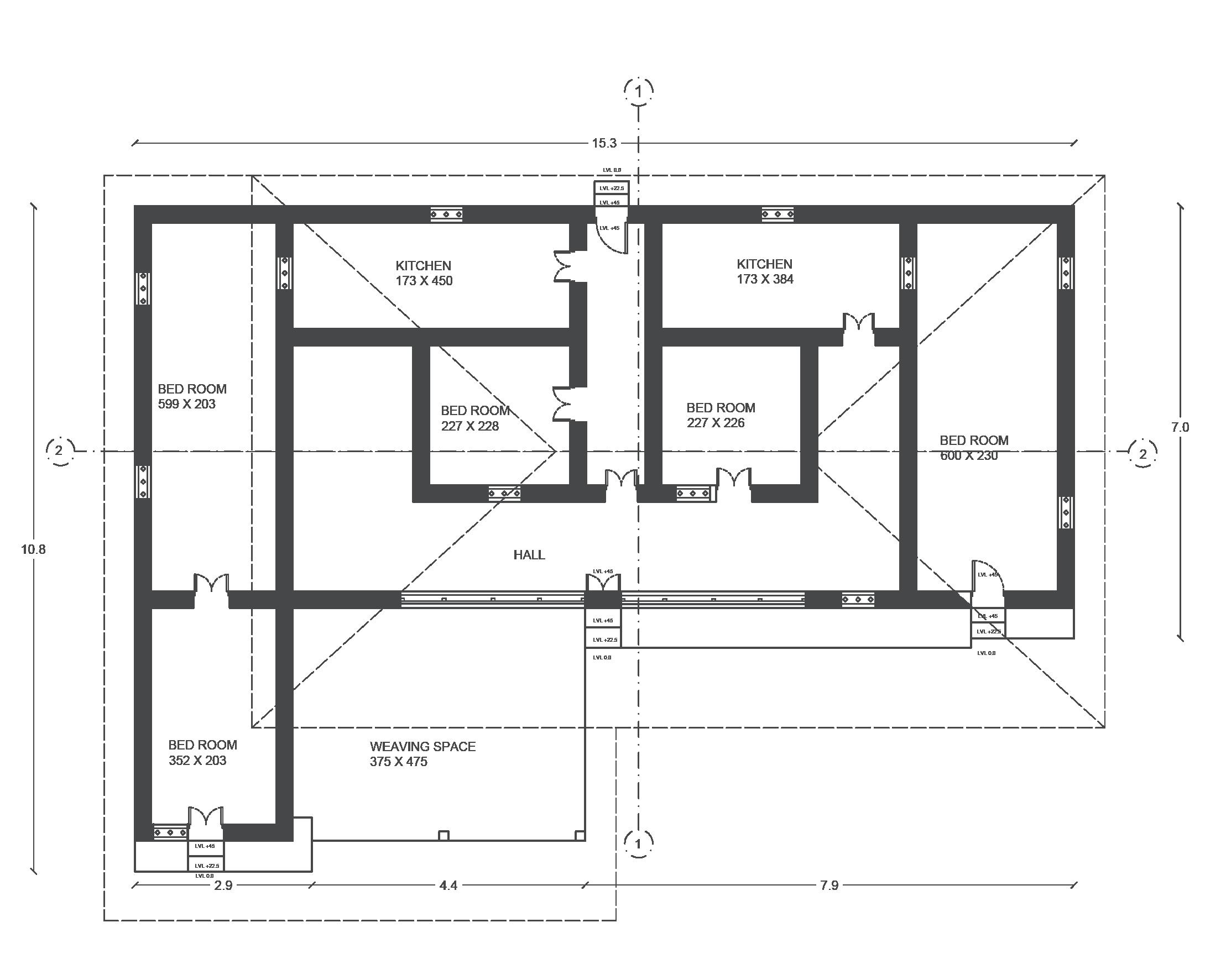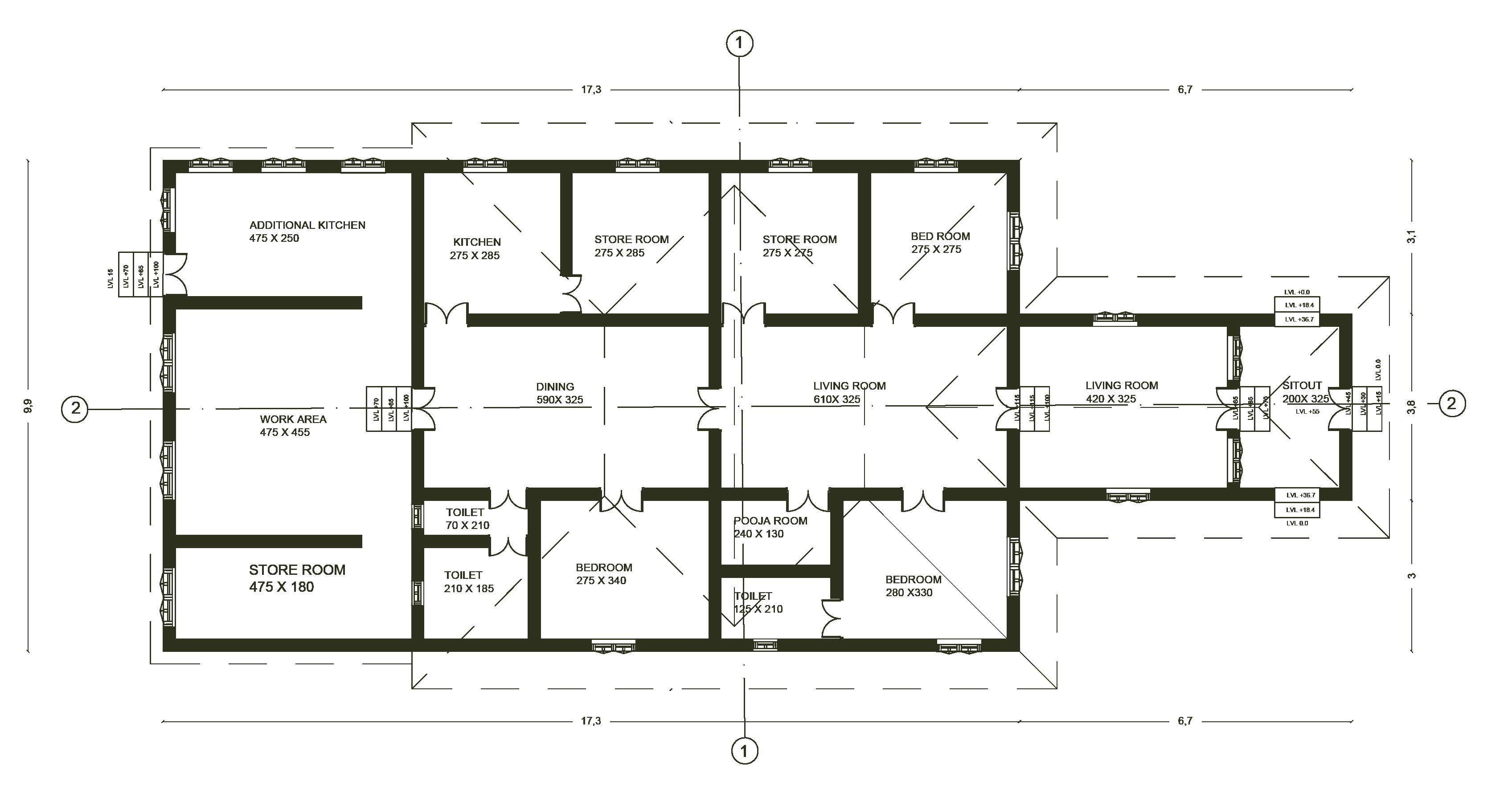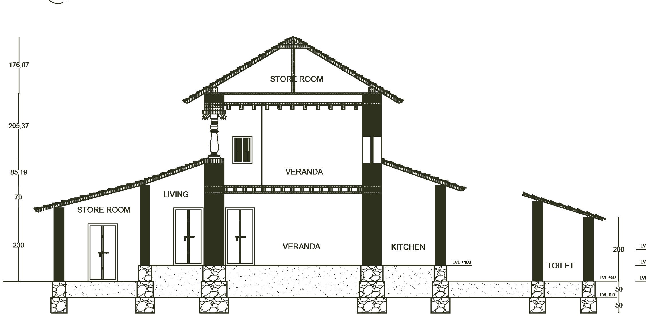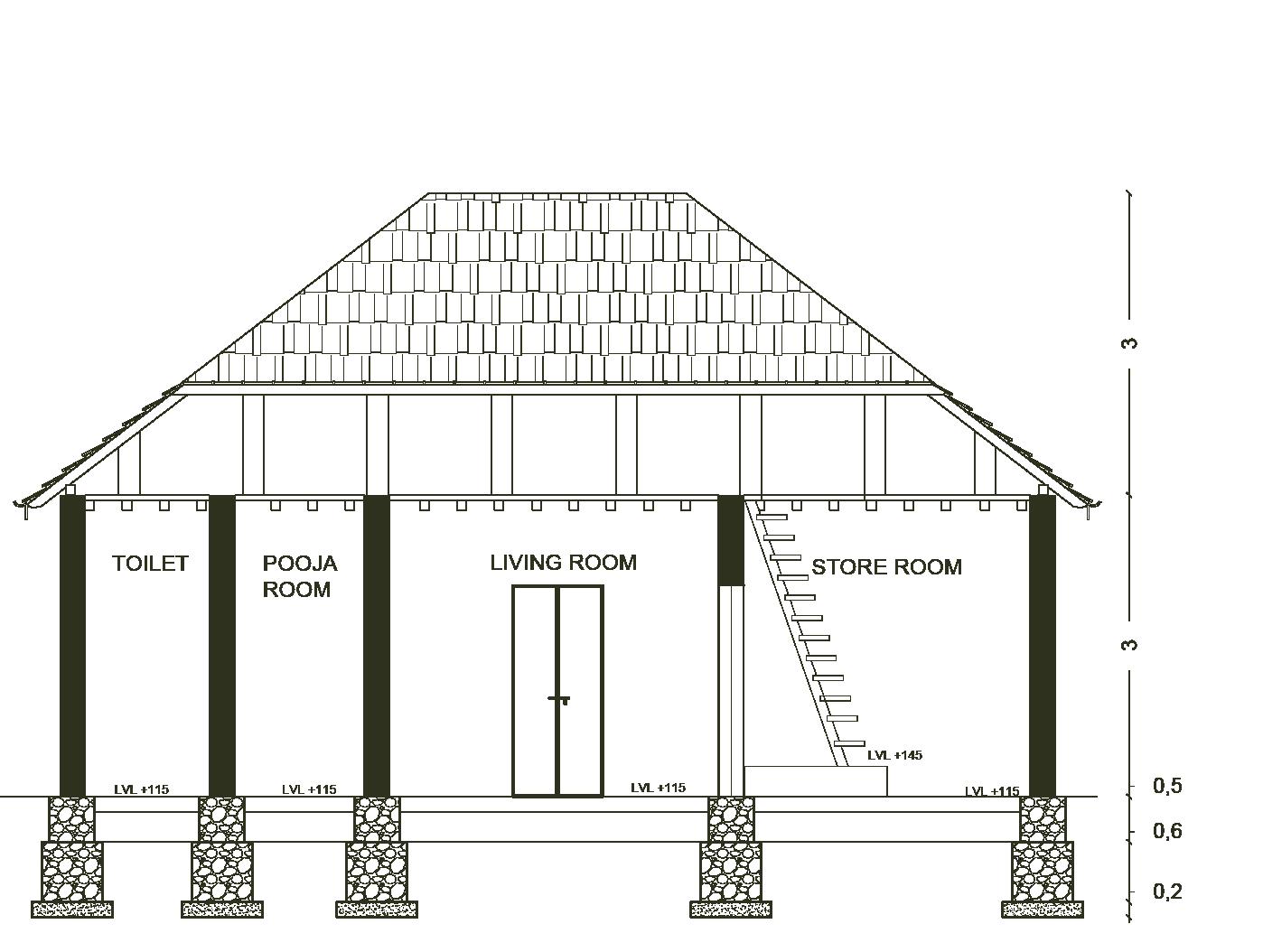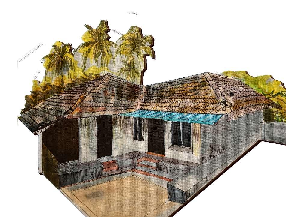 The Puthan house is situated in a private neighborhood in Kodumbu, 220 feet east of the Palakkad-Chittur Road, on a site measuring 1937 square feet. According to the traditional kerala style of architecture, this house has a beautiful “Padippura” that serves as a grand entryway. The “poomukham” (sit out) that comes before it leads to the living room and other rooms. Clay tiles are used for the roofing, which is supported by a robust framework made of timber rafters and beams. Other noteworthy architectural elements include its coffered ceiling, long, narrow passageways, and arched windows.