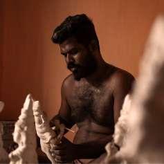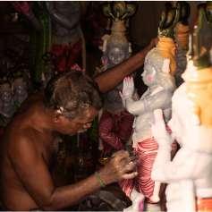 The essential essence of kodumba culture is sculpture-making. Right now, the artists are working in front of their house.Their only source of revenue is the production of various religious artworks. In Kodumba, they today enjoy a greater social standing than weavers. Hand-crafting sculptures and preserving this tradition for future generations.