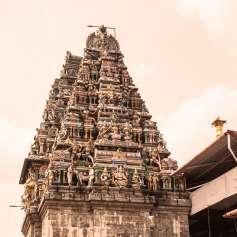 Stucco decorations : the exterior of the gopuram is decorated with stucco decorations.