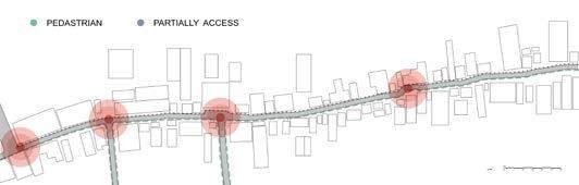 The pedestrian axis is in tge right side of the street .These pathways are single way axis of 120m width .A partial pedestrian is provided in the left side .Hence there is a crowd in the street at evening time.