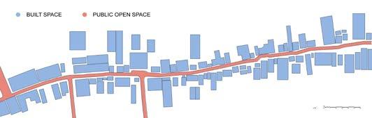 There are less number of open spaces. This is because every road is connected and is in a straight stretch. All the buildings are close to eachother hence there is no space inbetween the buildings.