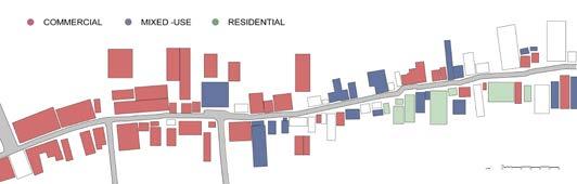 Antique shops, trading centers and godowns are commonly seen. Residential buildings are less.