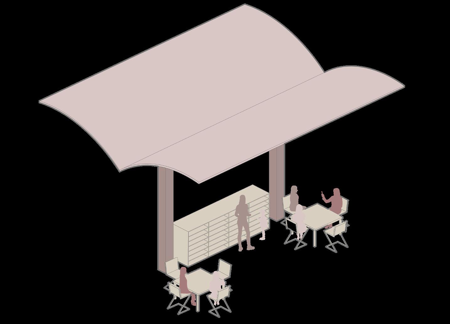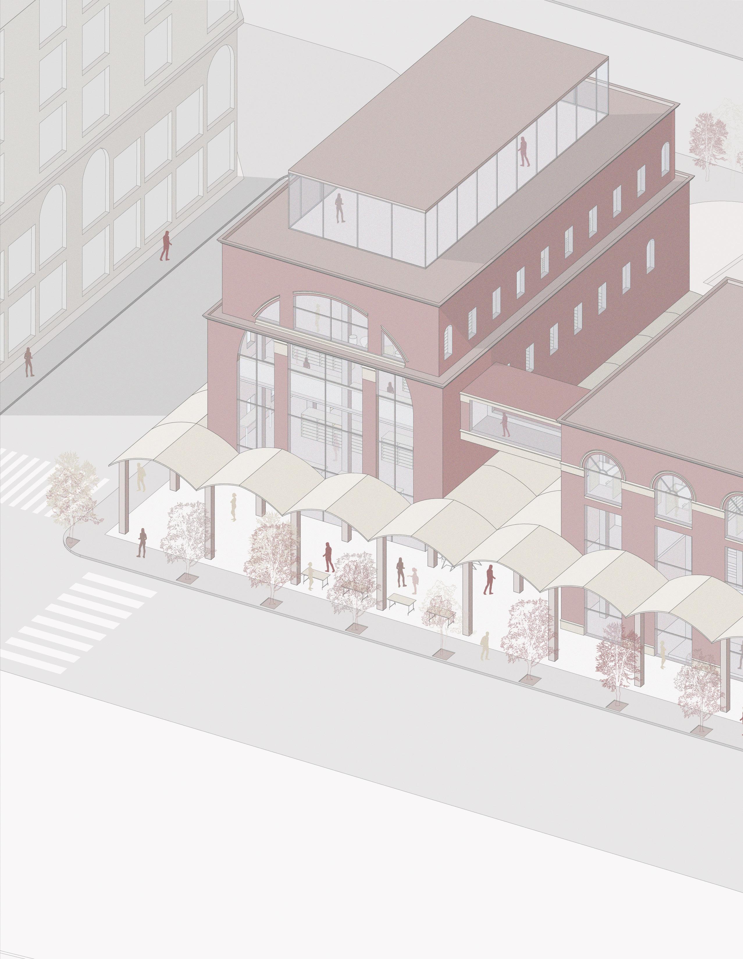 inspired by the variety of buntings found around Chinatown, the changeable roof panels and 12’ bays enable the different possibilities for the marketplace