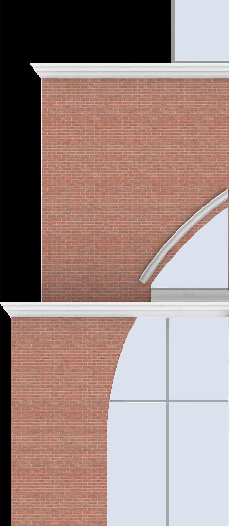 building 2: variated palladian window that treats all three segments equally - segments span the height of the facade bringing ample light into both the performance & quiet-reading spaces