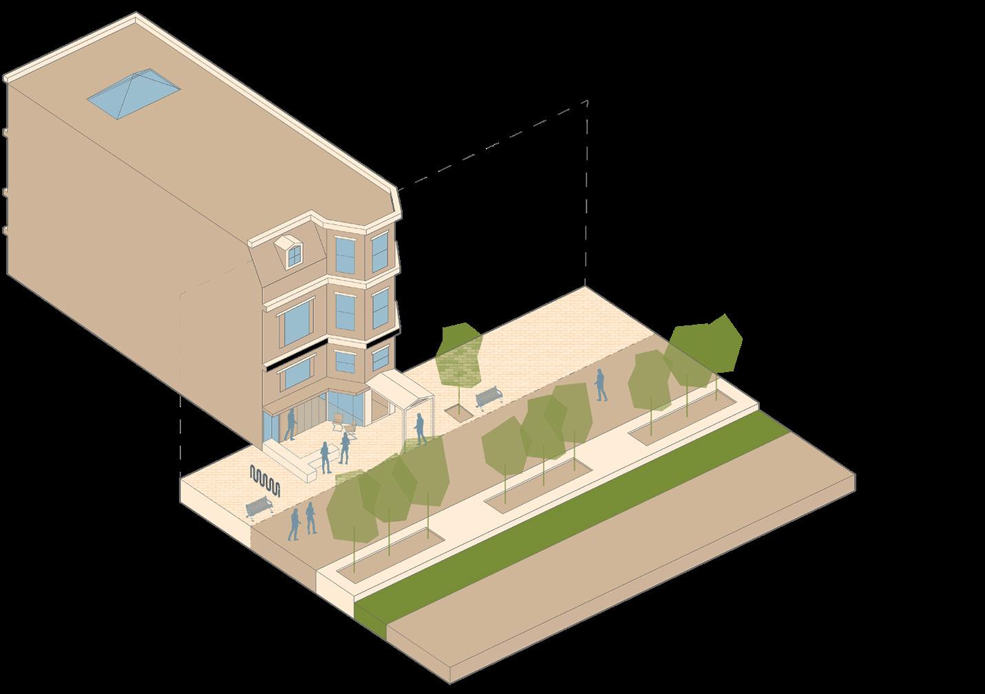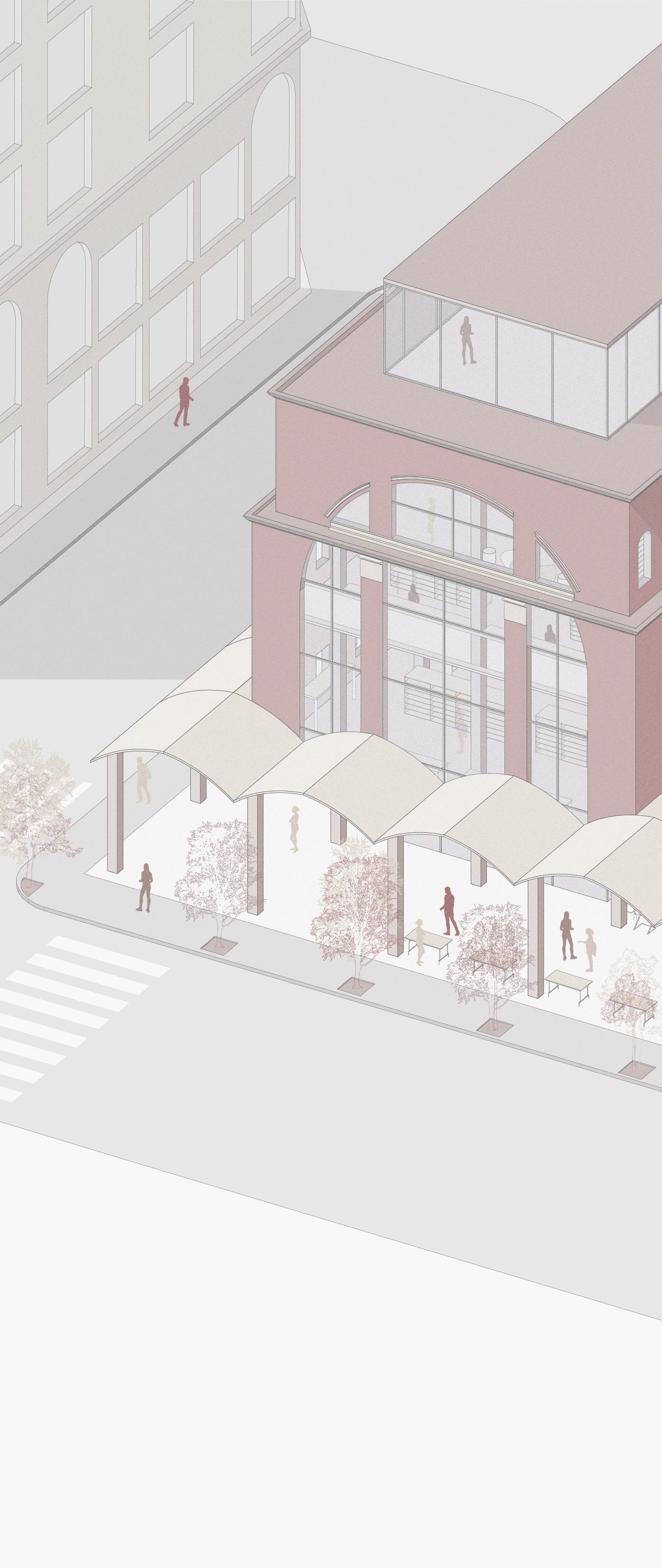 building 3: storefront that characterizes the cafe within as a welcoming space to sit, breathe, and engage with surrounding neighborhood