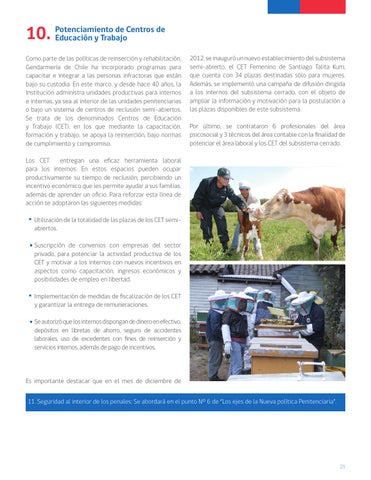 Es importante destacar que en el mes de diciembre de 11. Seguridad al interior de los penales: Se abordará en el punto Nº 6 de “Los ejes de la Nueva política Penitenciaria”.