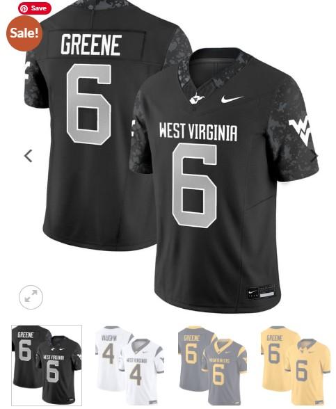 Garrett Greene Jersey #6 West Virginia Mountaineers 2025 Vapor Stitched