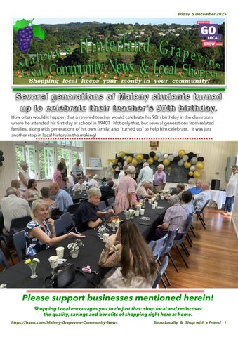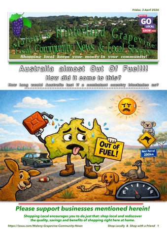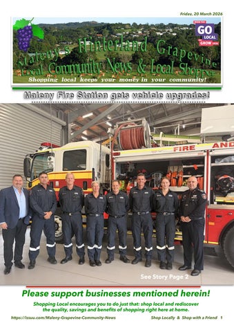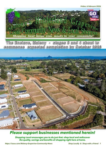 Maleny Grapevine Community News and Maleny District Sports Club News & Results. Maleny is situated in Queensland’s Sunshine Coast Hinterland. Maleny is situated some 90 kilometres (56 ml) north of Brisbane on the Blackall Range overlooking the Sunshine Coast hinterland. The earliest residents of the Sunshine Coast were the Jinibara indigenous people. After the 1980s, the Sunshine Coast experienced rapid population growth and is now one of the fastest-growing regions in Australia. By Shopping locally local residents can help create jobs for locals and maintain the local area’s prosperity. Read a bit about our areas sport, history and facilities. Maleny Paint Place. Maleny Paint Supplies. Maleny. Hinterlandgrapevine. Sports. News. Community Organisations. Maleny Accommodation. Restaurants. B & B. Montville Attractions. Blackall Range. Walks. Shopping. Visit: Mary Cairncross Park. Kondalilla Falls. Baroon Pocket Dam. Gardners Falls. "READ IT IN THE GRAPEVINE"