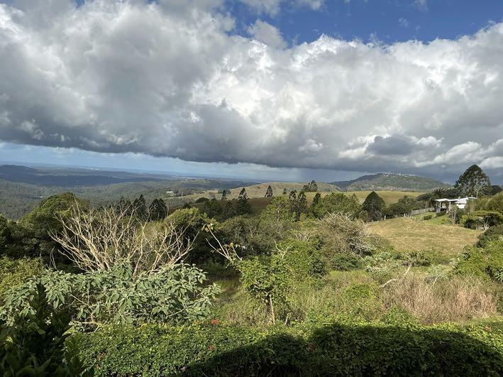 The cover photo shows the views from a quirky Antique Shop and tea rooms at 2 Benecke Road, Balmoral Ridge, Maleny, Queensland. This rambling style cottage full of antique delights, gives not only great tea and coffee with home made scones, but great views along the Sunshine Coast from the covered verandah.