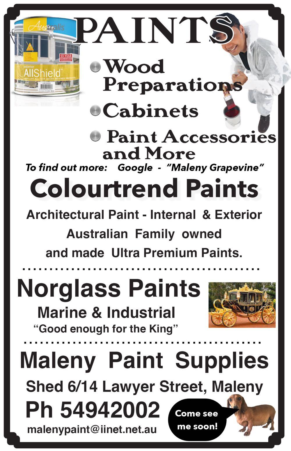 Email thegrapevine@westnet.com.au or phone Les at Maleny Paint Supplies on 54942002.