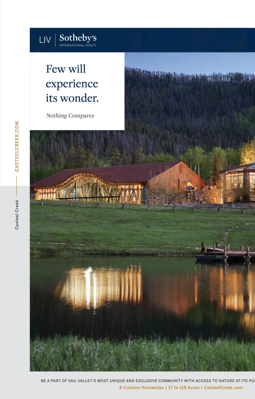 RECENT PUBLICATIONS for the moment Member of the Exclusiv VAIL VALLEY 970.476.7944 BEAVER CREEK 970.845.0400 EDWARDS 970.748.5150 RESORTS.LIVSOTHEBYSREALTY.COM 250 ACRES | $42,000,000 | BARBARA SCRIVENS 970.471.1223 & MALIA COX NOBREGA 970.977.1041 CASTEEL CREEK 86 Jacksons Path, Cordillera the Summit 5 BD | 7 BA | 8,285 SF | $4,995,000 LuxCordillera.com Jeffrey Morgan 720.314.0023 217 N. Fairway Drive, Beaver Creek 5 BD | 6 BA 3,352 SF | $2,900,000 | BCFairwayLuxury.com Barbara Scrivens 970.471.1223 75 Red Draw, Cordillera Ranch Land 1.29 Acres $300,000 Barbara Scrivens 970.471.1223 CASTEELCREEK.COM 1195 Pilgrim Drive, Lake Creek Land | 9.87 Acres | $2,800,000 Barbara Scrivens 970.471.1223