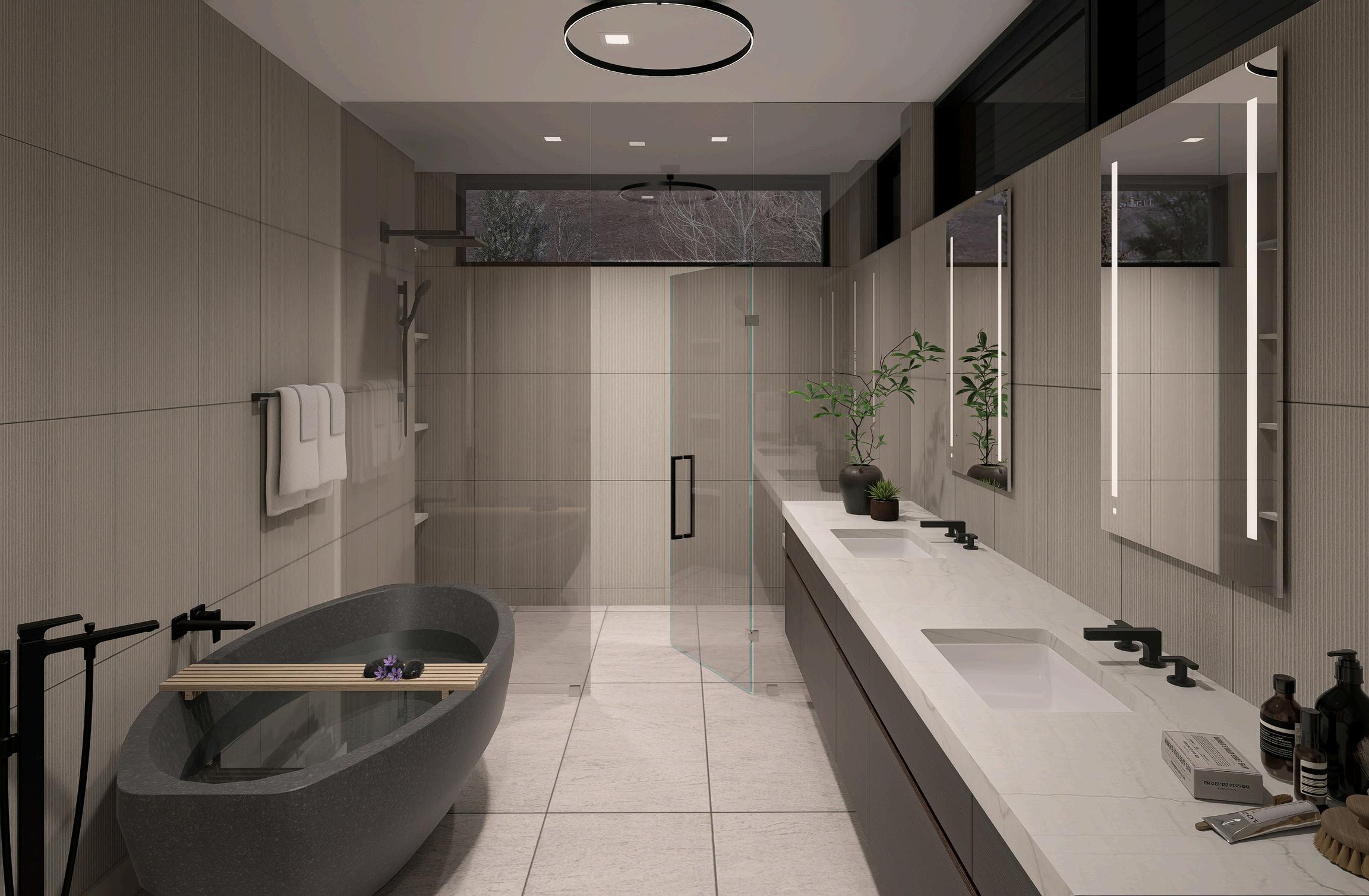 This specification book was prepared during the residence’s preliminary design phase. All images contained herein are virtual renderings intended to depict the anticipated finished product. During the course of construction and design refinement, certain finishes, fixtures, materials, and design elements may be modified or substituted.